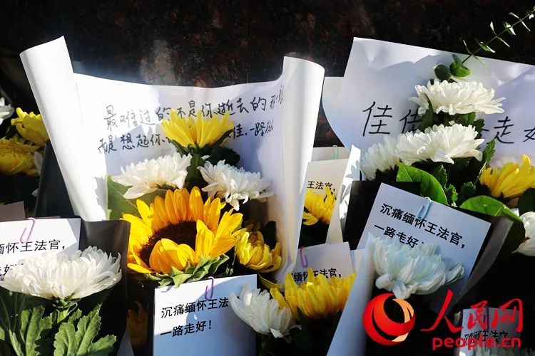 8月13日,王佳佳逝世第7天,她生前工作的郾城区人民法院门口被很多不知名的市民送上了寄托哀思的菊花。