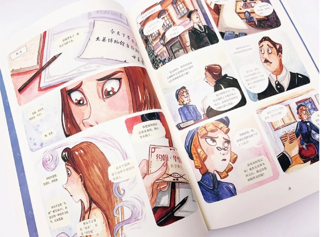 本系列漫画在还原精彩故事的同时,更用如梦似幻的淡彩手绘图为读者重现了一个19世纪末精美繁复的维多利亚时代的伦敦。画面的处理极富电影镜头感,人物表情和肢体语言等细节刻画十分到位,感染力非常强。这使得原本许多要靠读者意会和想象的东西得以用具象的方式呈现在眼前。