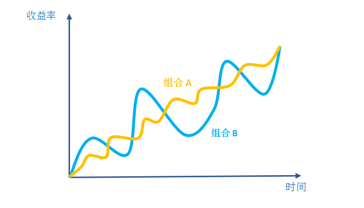 A、B“殊途同归”,但是组合A以更低的波动,获得了同组合B相同的收益,收益-风险“性价比”更高。