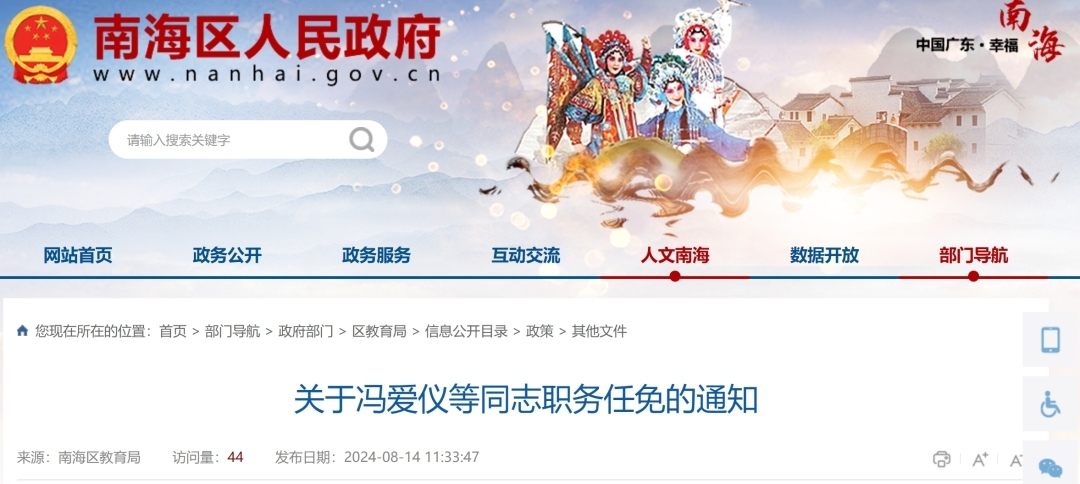昨日,佛山市南海区人民政府官网发布通告,南海区西樵镇18所中小学多名校长上任。