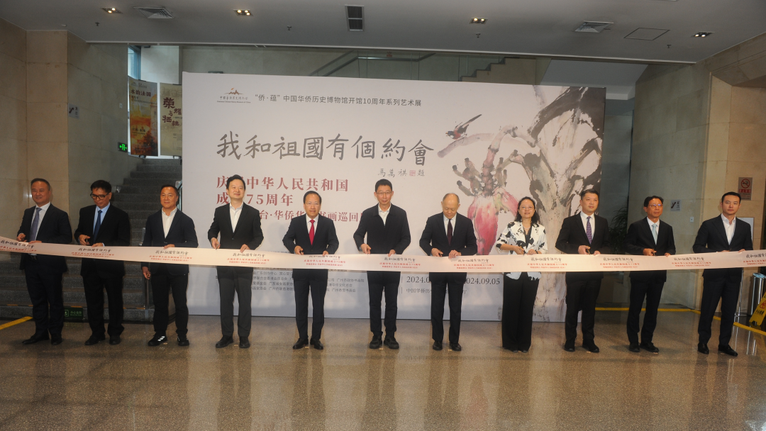 丹青贺华诞,翰墨颂中华。为庆祝中华人民共和国成立75周年,展现海内外中华儿女与祖国同频共振、携手前行的美好愿景,8月15日,“我和祖国有个约会——庆祝中华人民共和国成立75周年暨穗港澳台·华侨华人书画巡回展”在中国华侨历史博物馆开幕,港澳、侨界嘉宾近百人参加开幕式。