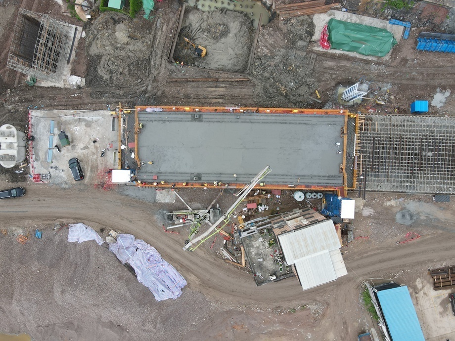 此次完成的首片现浇梁为珠江四线特大桥正线117号-118号墩现浇简支箱梁,梁长35.6米,宽12米,高2.68米,混凝土用量317方。浇筑过程中,管段内技术干部、试验室负责人、安全员全程旁站,测量队监测到位,梁体混凝土浇筑严格按照程序施工,确保工程质量,整个施工过程组织严密,工序衔接有序,进展顺利。