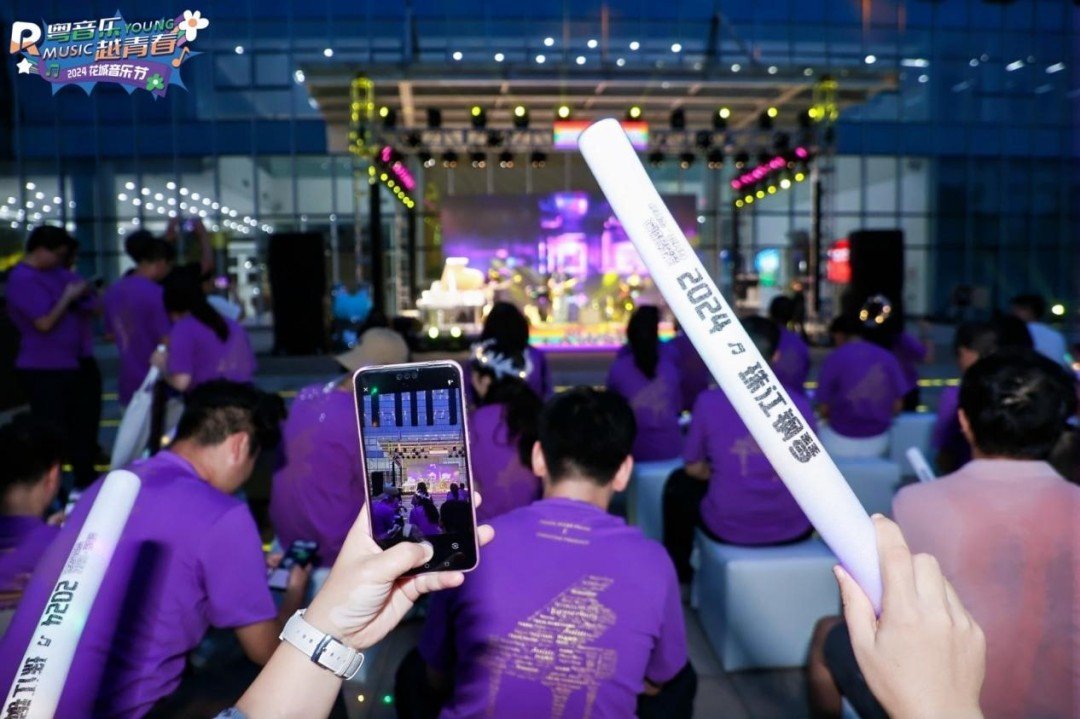 伴着夏夜的晚风,“粤音乐·越青春”音乐会正式拉开帷幕。在炫酷的舞台灯光下,吉他大师Mike Lawson、HS乐队、珠江乐队齐齐开唱,共同演绎经典流行歌曲。舞台上下热情互动,青年们挥舞着手中的荧光棒,以音乐为媒,尽情展现青春活力,跃动青春音符,唱响青春最强音。