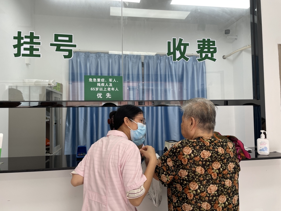 近期落成的穗东街庙头社区卫生服务站(以下简称“卫生服务站“)和庙头社区颐康站仅一路之隔,距离最近的安置区只需要两三分钟步行路程,距离最远的安置区也只需要十分钟左右,不少老年人一大早就来卫生服务站门口排队,取药或者做中医理疗。从8月1日启用至今,已经服务200余人次。