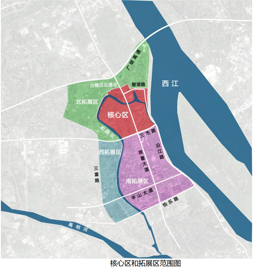 核心区和拓展区范围图(西江产业新城提供)