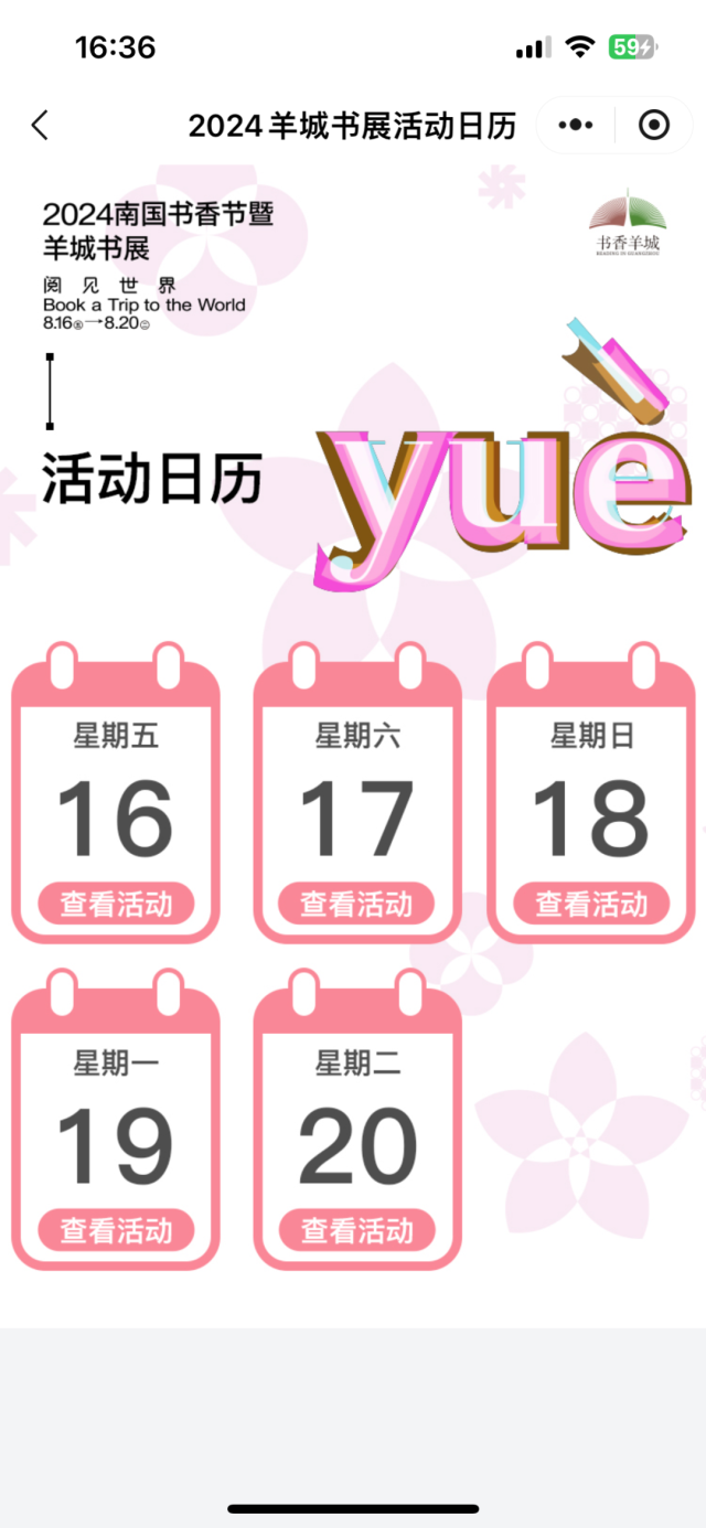 1.进入羊城书展云会场,点击活动日历,在活动日历选择指定日期和活动;