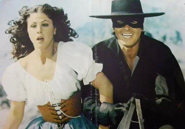 1975年,由40岁的阿兰·德龙主演的西部片《佐罗》上映。影片中的佐罗是剑术高绝,英俊潇洒,惩恶扬善的蒙面大侠。一袭黑色斗篷、一匹枣红坐骑、一条凌空挥舞的长鞭,黑色礼帽下,迷人的微笑绽放出风流倜傥的浪漫气质。