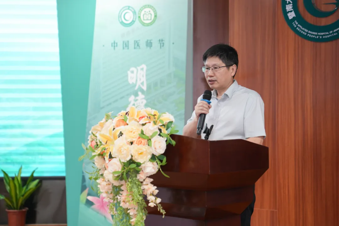 容桂街道党工委副书记梁耀焜代表容桂街道党工委、办事处向容桂健共体的全体医务工作者致以节日的问候和崇高的敬意!他希望全体医务工作者始终坚持“以人民健康为中心”的理念,牢记“敬佑生命、救死扶伤、甘于奉献、大爱无疆”的初心,以修医德、行仁术、正医风、守医规的实际行动,在深化医药卫生体制改革和护佑群众健康中实现自我价值,齐心协力推进容桂卫生健康事业高质量发展!