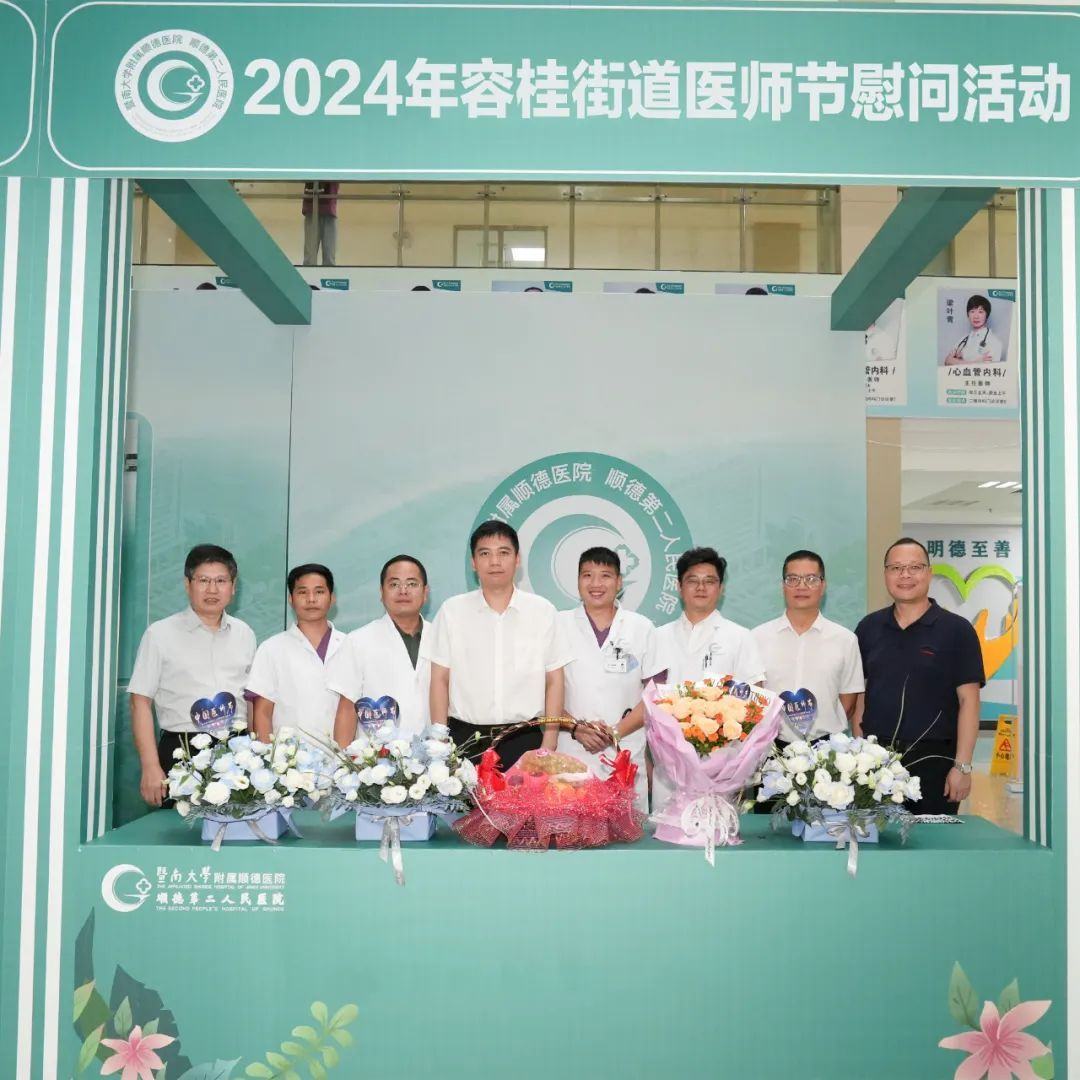 8月19日,容桂街道党工委副书记梁耀焜,容桂街道卫生健康办公室主任何健全,暨南大学附属顺德医院党委书记钟永恒、院长陈玉兵等领导分别慰问容桂健共体一线医务工作者,为临床一线医生们送上节日的祝福。