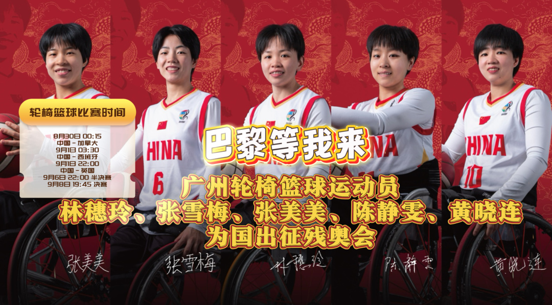 巴黎残奥会即将开幕,广州轮椅篮球运动员林穗玲、张雪梅、黄晓连、张美美、陈静雯为国出征,团结拼搏。