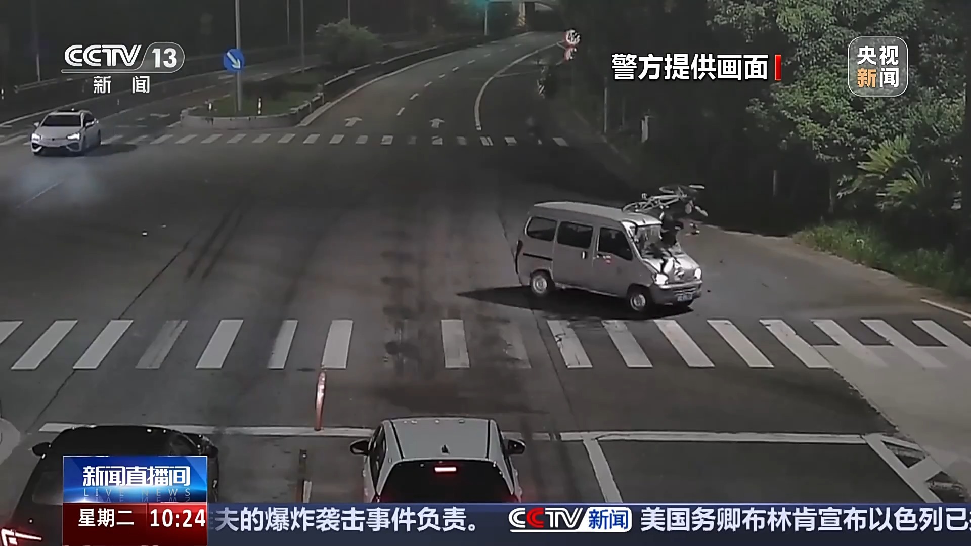 今年8月7日晚上9点左右,在浙江宁波宁海县,四名骑行爱好者在夜骑时闯红灯过路口,前面三人侥幸通过,而排在末尾的任某却与一辆左转弯的面包车相撞。任某连人带车被撞飞,好在任某正确佩戴了头盔,没有生命危险。