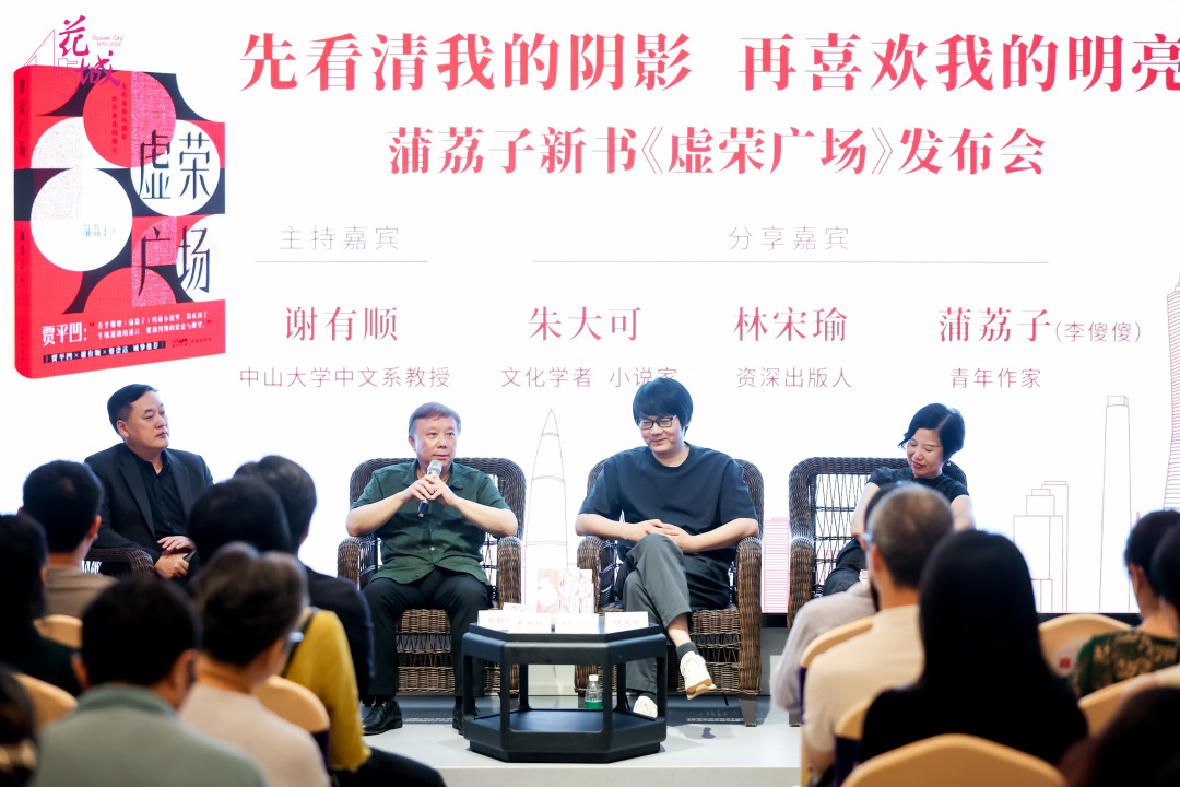 借着南国书香节的东风,著名文化学者朱大可、中山大学教授谢有顺、资深出版人林宋瑜与青年作家蒲荔子在绿意青葱的花城文学院,用新书《虚荣广场》开启了一扇穿越时空的任意门,带领现场读者来到千禧年代的广州,一起探讨虚荣与真相、成长与爱情。