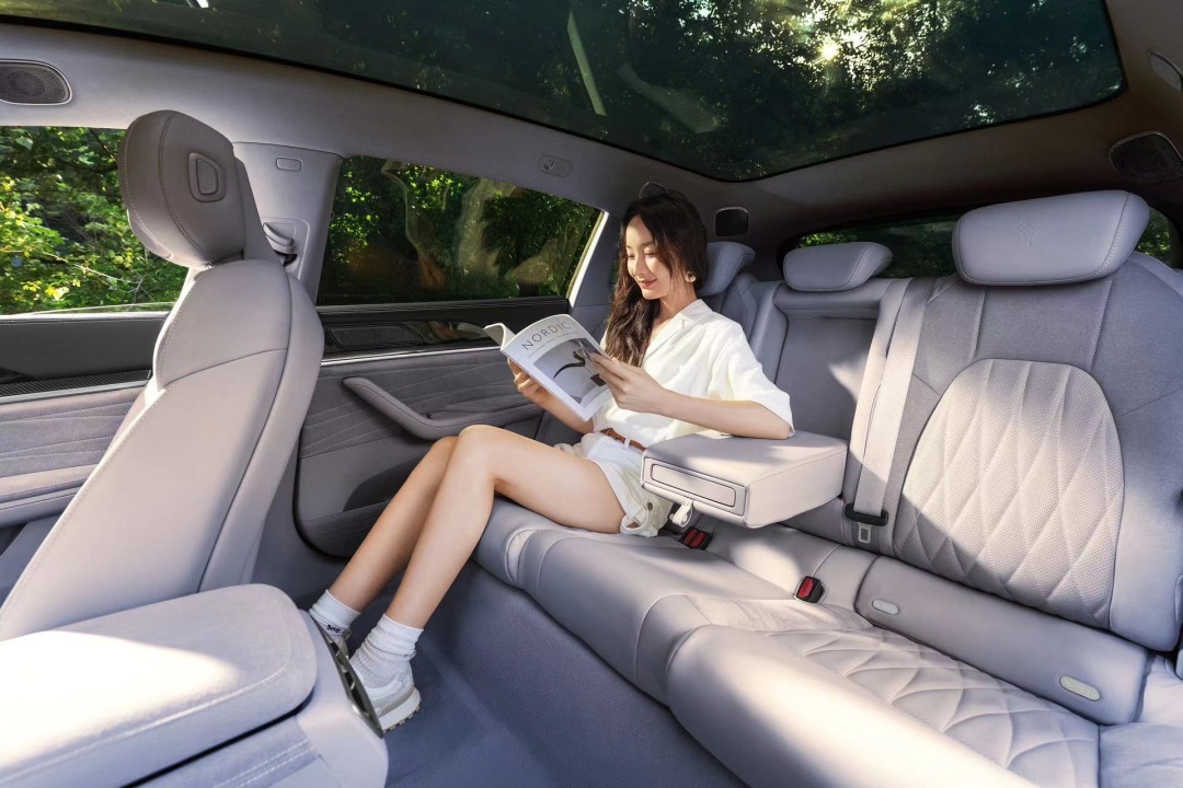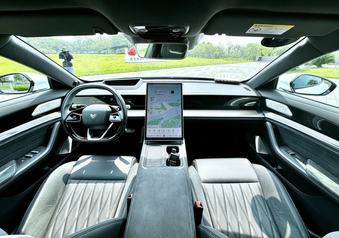 座舱前方是搭载了高通骁龙8155P芯片17.6英寸2.5K中控屏,以及12.7英寸数码仪表,还有49英寸的AR-HUD,再配合最新的NETA SOUND音响系统,可实现720°环绕立体声效果,加上良好的NVH性能,听、看、唱、玩感受一流。