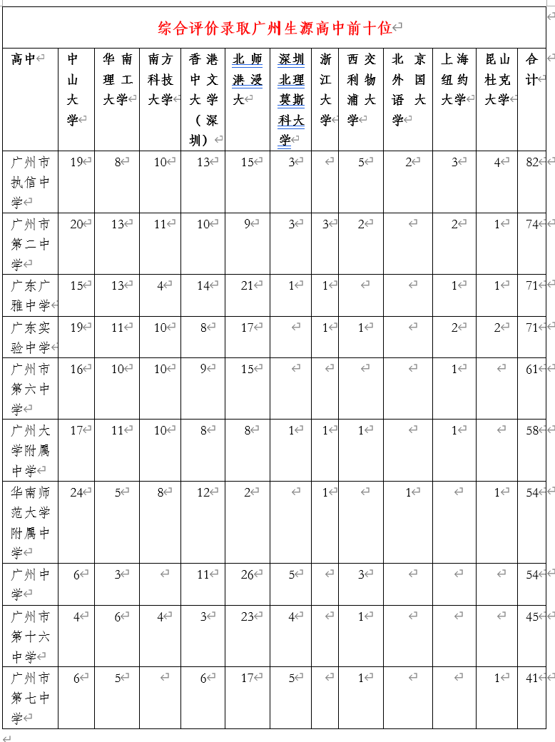 近日,广东省教育考试院针对高校在粤开展综合评价招生录取情况完成公示。结果显示,中大、华工等11所高校今年通过该模式招生2849人,创下新高,比去年增加69人,广州生源占比超过三分之一。由于参与招生院校的高质量、选拔模式的多元化,综合评价已成为广东优秀考生冲击名校的重要升学途径。