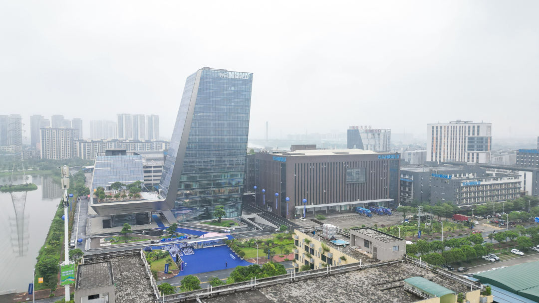 记者看到,新落成的悍高总部大楼总体突出流线设计,“落笔”双塔之姿,以极具视觉张力的倾斜幕墙屹立地面之上。随着项目“落地”,该建筑成为顺德高新区的“最美天际线”。登上高层,可以尽览片区发展新貌。
