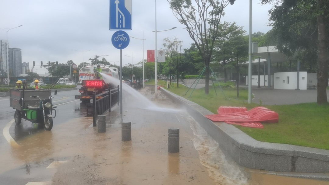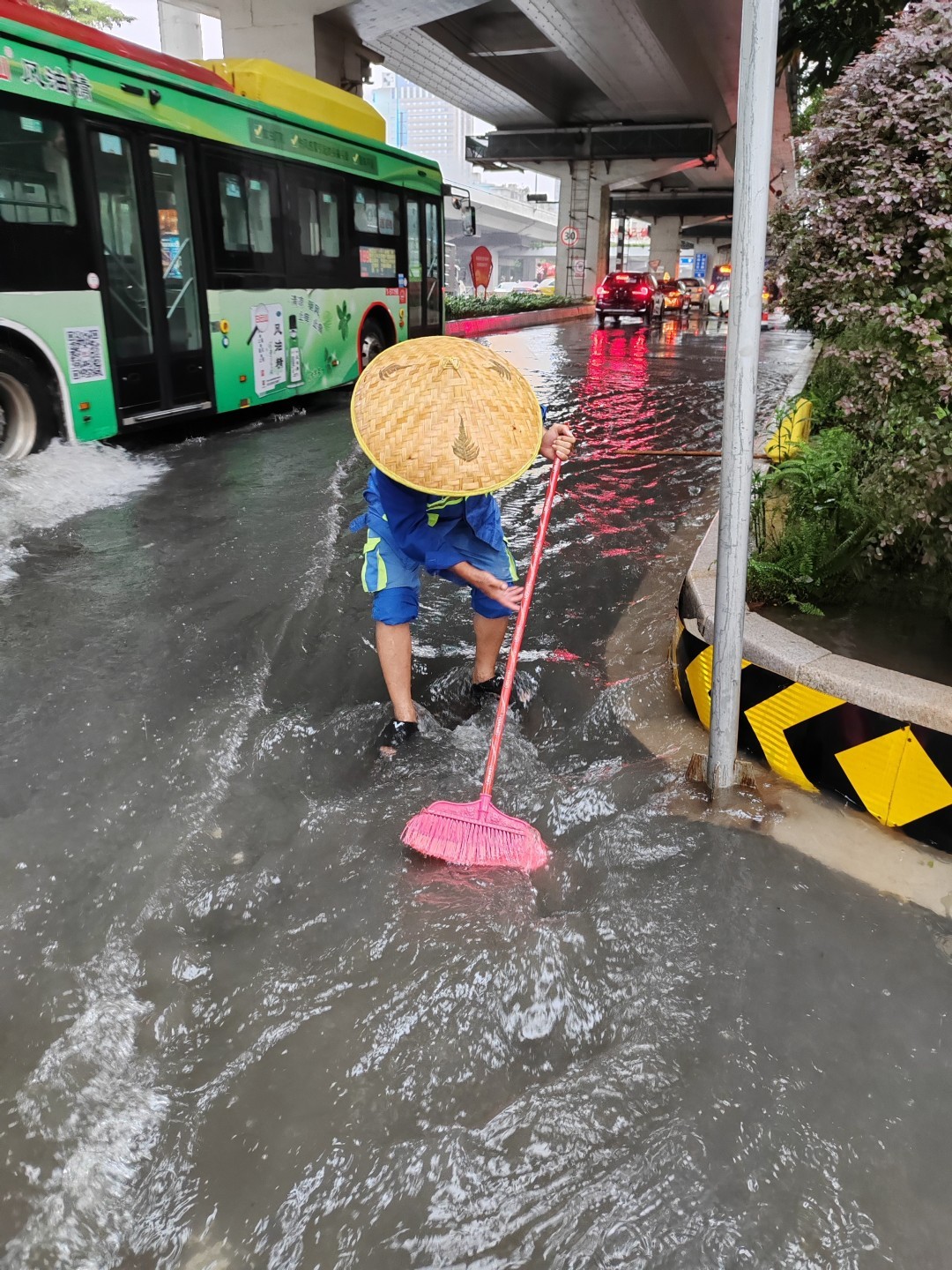 当日,白云全区出动一线环卫工人超4600人次、环卫车辆1100余车次,巡查人员约300人次,出动巡查督导车辆100余台次,巡查路段950条次、隧道130余个次、桥梁180余座次,发现并协调清扫雨水口表面的垃圾杂物250余处,发现雨水口里面堵塞110处,及时交办相关责任部门或权属单位落实整改,全力做好强降雨期间防汛工作。