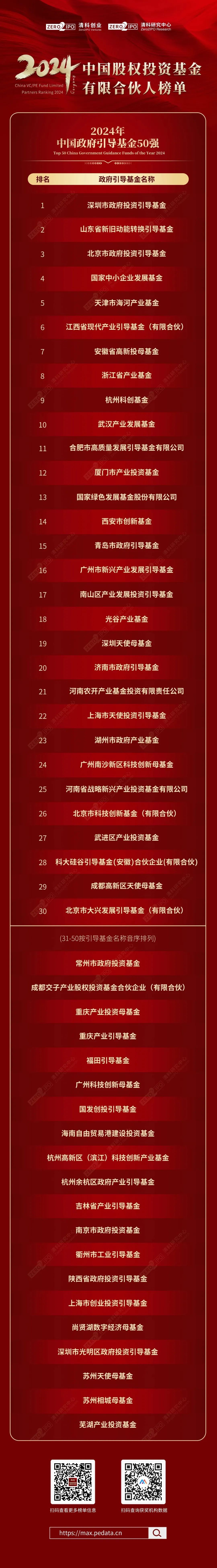 8月21日,由清科创业、投资界主办的第十八届中国基金合伙人峰会在上海开幕,正式揭晓2024年中国股权投资基金有限合伙人榜单,其中,广州南沙新区科技创新母基金(以下简称“南沙科创母基金”)上榜“2024年中国政府引导基金50强”,位列第24名;同时上榜“2024年中国区县级政府引导基金30强”,位列第3名。