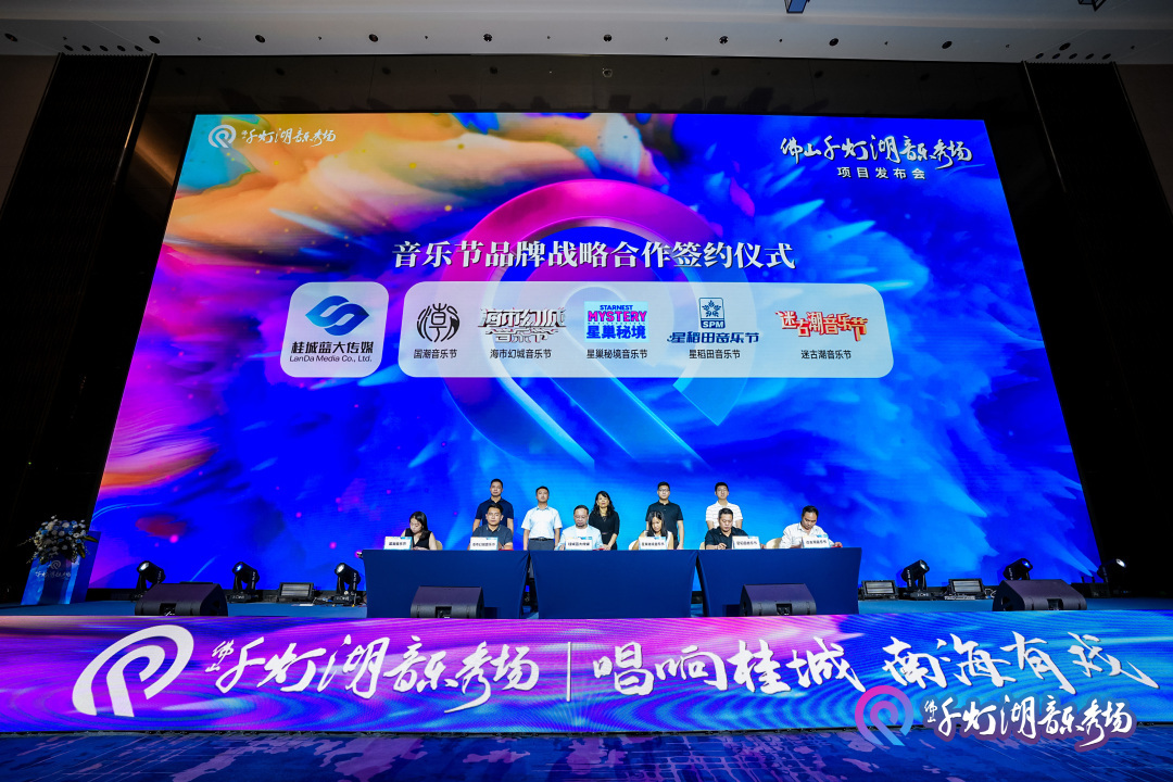 广佛极点迎来粤港澳大湾区演艺新地标!8月22日晚,佛山南海千灯湖音乐秀场项目盛大发布。作为城市CBD顶级户外音乐空间,千灯湖音乐秀场占地8万㎡、可容纳5万观众,能满足超大型音乐节、演唱会、大型演出的需求。在本场发布会上,十大音乐品牌、五家演艺公司与千灯湖音乐秀场项目达成了战略合作,五大音乐演出品牌宣布今年将陆续亮相千灯湖音乐秀场。