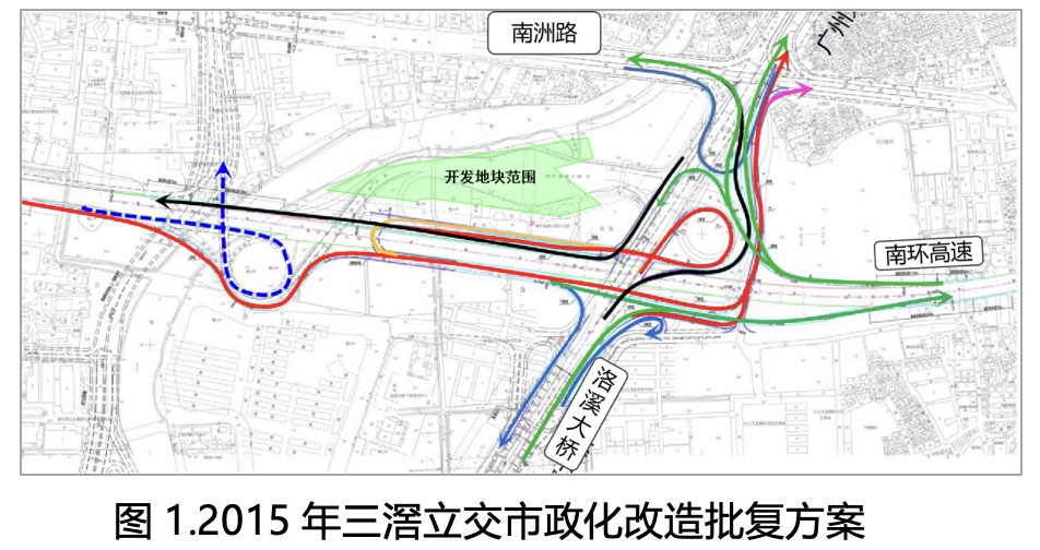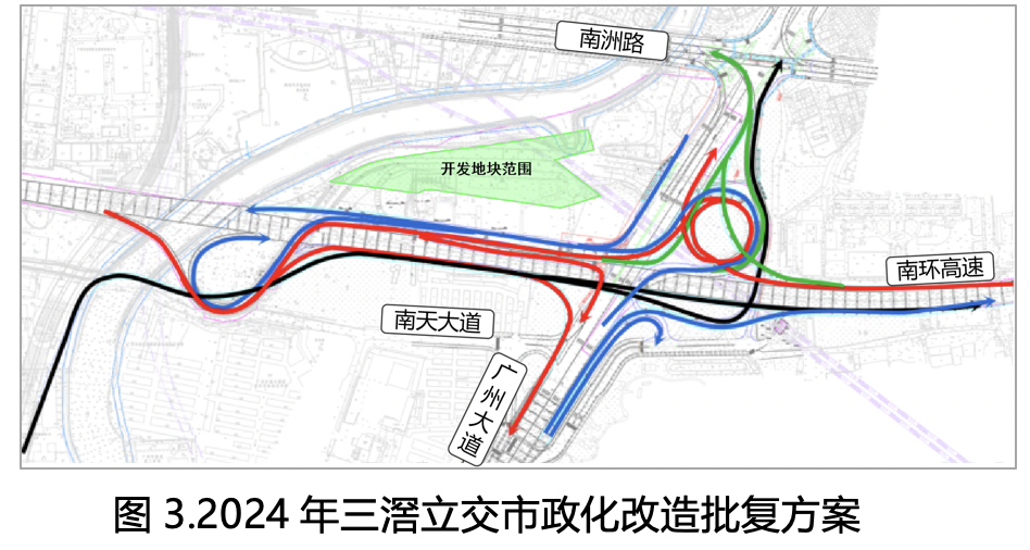 对比2015年的方案,现方案项目建设规模降低(不含海珠湾隧道--广州大道、南环连接通道),在减少对周边环境影响的同时,提升了交通效率,功能更加完善。该项目新建匝道桥、地面匝道长度合计减少2137米,其中匝道桥长度由原5967米减至3465米,将有效减少工程建设的投入成本;立交占地规模也相应大幅减少,尤其是在三滘立交地块西南侧(该处规划住宅离路最近)释放出约10米宽、380米长的退缩距离,将有效帮助降低高速公路对以后住宅建筑物的影响,切实提高土地利用效率。方案的一系列调整优化使得地块的潜在价值得到充分挖掘,为后续的开发利用奠定坚实基础。