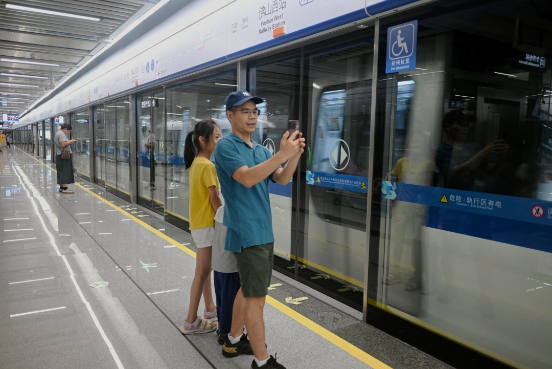 通车首日,大量广佛市民纷纷来到佛山地铁3号线在建段站点打卡,中山公园站、佛山西站、佛山大学站成为首日热门打卡站点。一大早,正读高中的“地铁爱好者”张同学特意在凌晨4时起床。他先是坐着父亲的车从顺德来到禅城中山公园站,随后乘坐首班地铁抵达东平站,再从顺德北乘坐城际到佛山西站。6时许,他便来到中山公园站门口等待“开闸”那一刻。他告诉记者,广佛地铁的线网融合和地铁建设的提速,不仅让他感受到同城化的便利,也感受到广州都市圈发展的巨大变迁。