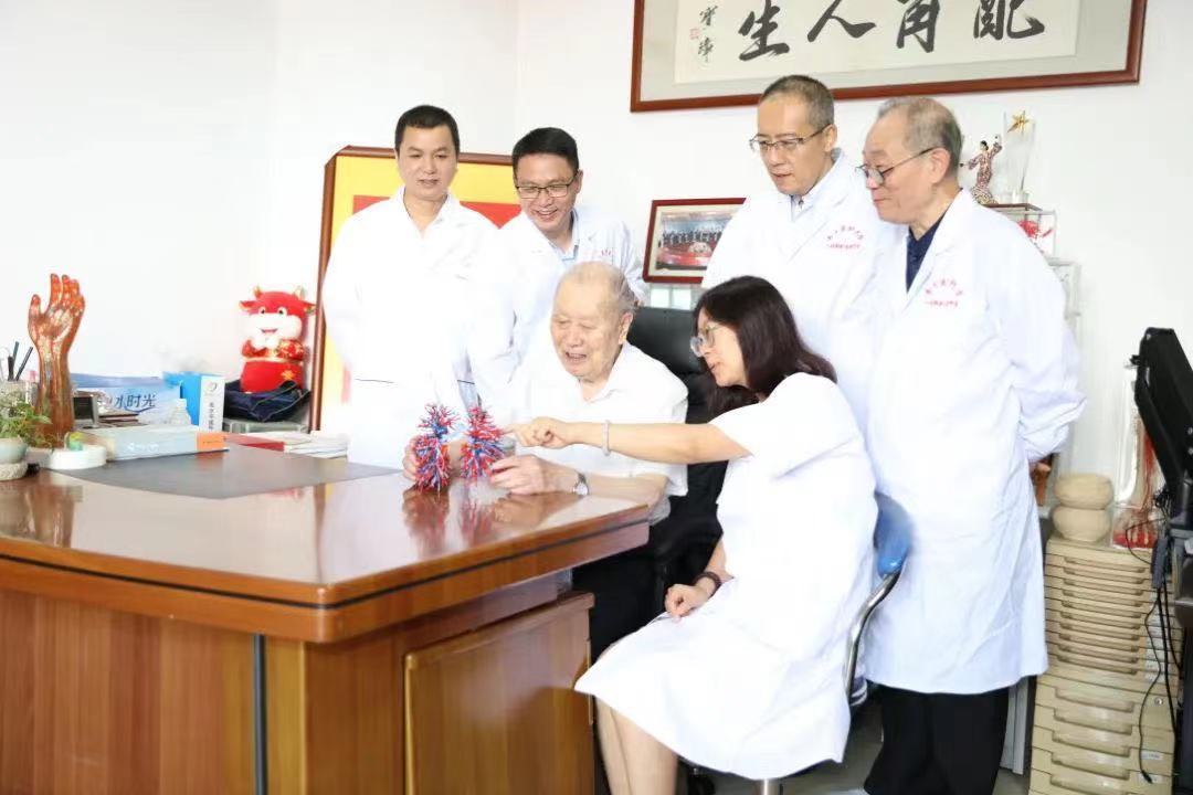 学生、同事、同行、乡亲赶来为钟世镇庆祝百岁生日。