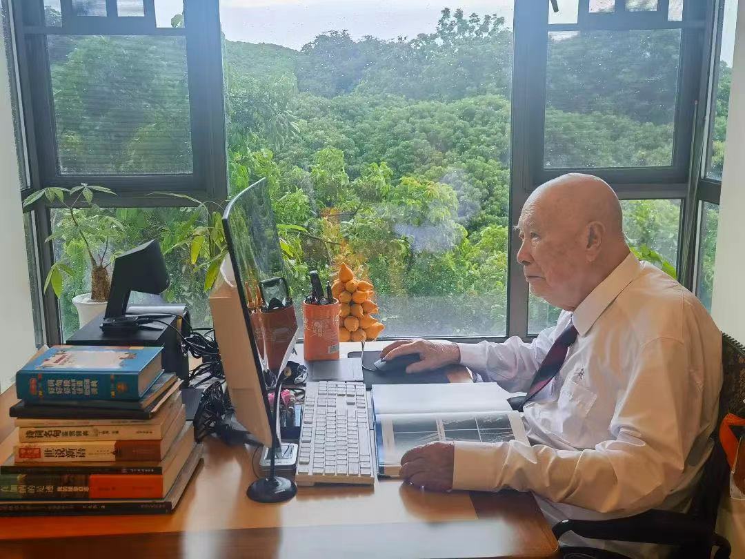 如今的钟世镇居住在帽峰山下的康养中心,房间整洁利落,桌子上摆放着一台电脑、一个放大镜、一盏台灯和许多专业书籍。由于对花粉过敏,他的房间从不摆放鲜花,绿叶植物成为唯一的点缀,这似乎也成为钟世镇对自己人生定位的真实写照,“不做鲜花、甘当绿叶,不做主角、甘当配角”。