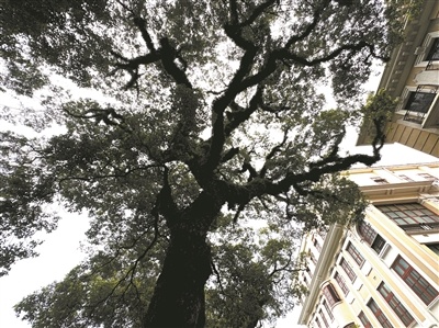 这棵古樟树植于1788年,枝叶繁茂,树冠巨大。
