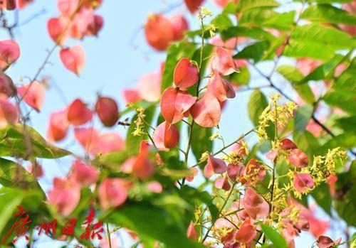 8月25日早晨,东山湖公园,有着金黄色花和紫红色蒴果的复羽叶栾树煞是好看。
