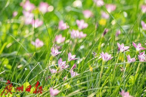 东山湖公园,粉红色的韭莲在阳光照耀下。