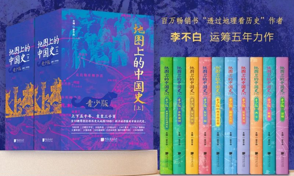 近日,鹿柴文化联合中国画报出版社推出地图专家李不白的《地图上的中国史》青少版系列(全10册)。