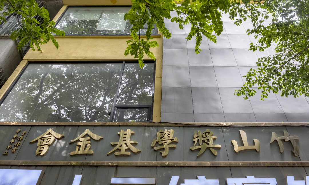 8月23日,记者来到钟落潭镇福龙路60号,这栋灰黄色小楼立在街道转角,外观看起来平凡无奇,门面上“竹山奖学基金会” 的七个繁体金字,透出这栋小楼的与众不同。