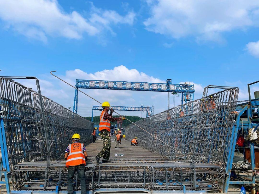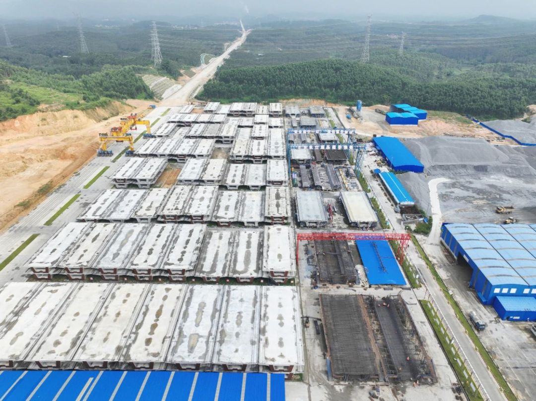 该标段内的鹤山制梁场是珠肇高铁全线最大制梁场,共承担706榀箱梁制架任务,其中本标段制架梁301榀、相邻标段制架梁405榀,具有“体量大、数量多”的特点,为全线控制性工程。截至目前,梁场已完成预制箱梁190榀,架梁75榀,箱梁预制正以每日2榀的速度生产,梁场箱梁架设也以每日3榀的速度推进,各项施工正有序推进中。