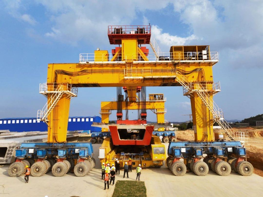 此次架设的箱梁长24米、宽12.6米,重达630吨。为了实现精准架设,项目部采用TJ-JQS1000-40C分体式架桥机进行架设。该设备适用首末跨架设、隧道进出口零距离架梁等多种工况,项目部还通过增加限位开关、改进液压系统、安装监控系统和风速仪等安全保障措施,实现了对架梁施工过程实时监测,极大提高了架梁的安全保障和施工效率。