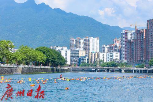 清澈的南水河迎来了比赛选手们在其中畅游。
