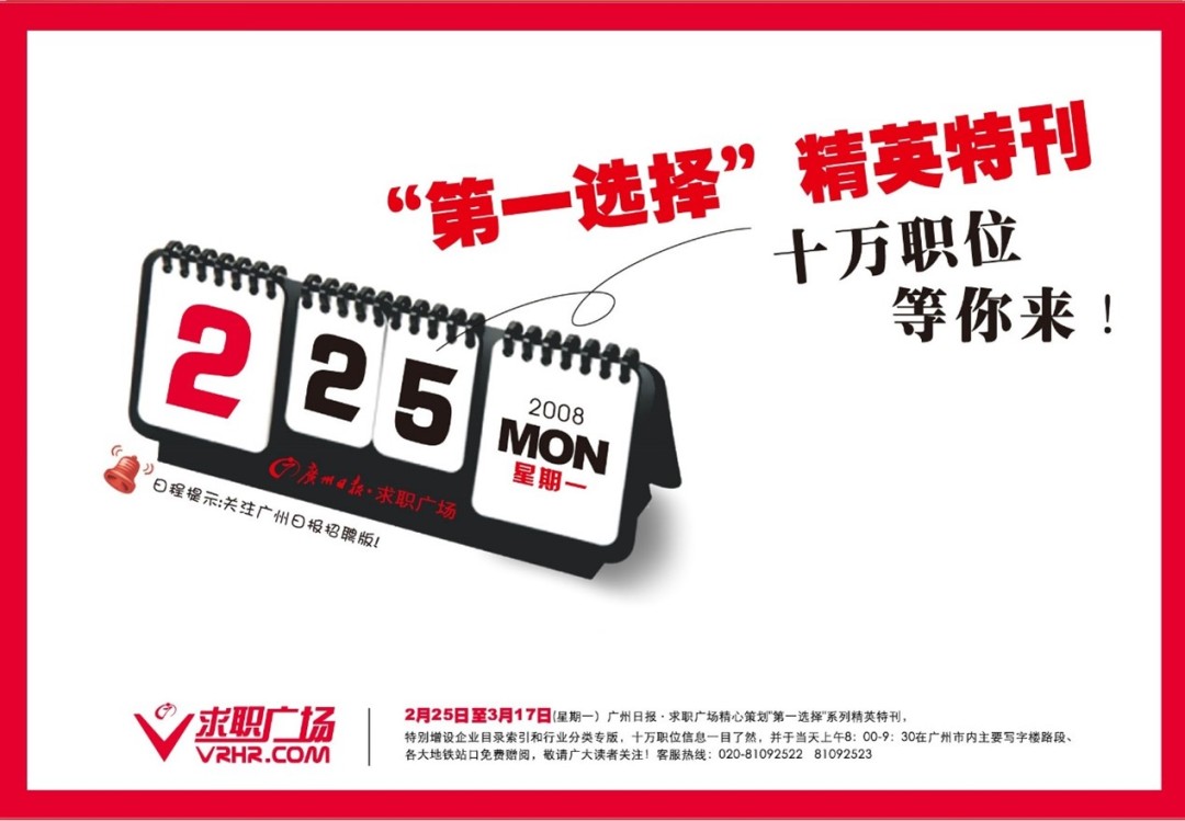 2008年2月25日,《求职广场》推出72版特刊《第一选择》,此为提前发布的特刊广告。