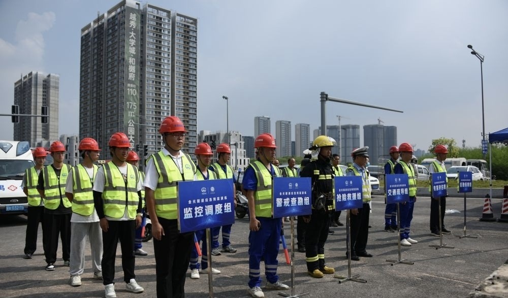 连通番禺区广州大学城和新造镇的重要通道的金光东隧道即将开通。8月26日下午,由广州市番禺区财政局、番禺区交通运输局、番禺区应急管理局联合举行金光隧道应急演练,为通车做好准备,检验金光隧道应急保障水平,提高各职能部门事故联合处置能力。番禺区相关领导参加演练活动,区各职能部门、属地镇街等单位领导观演。