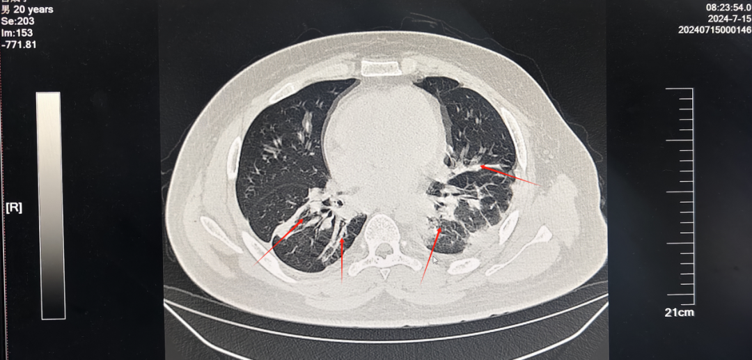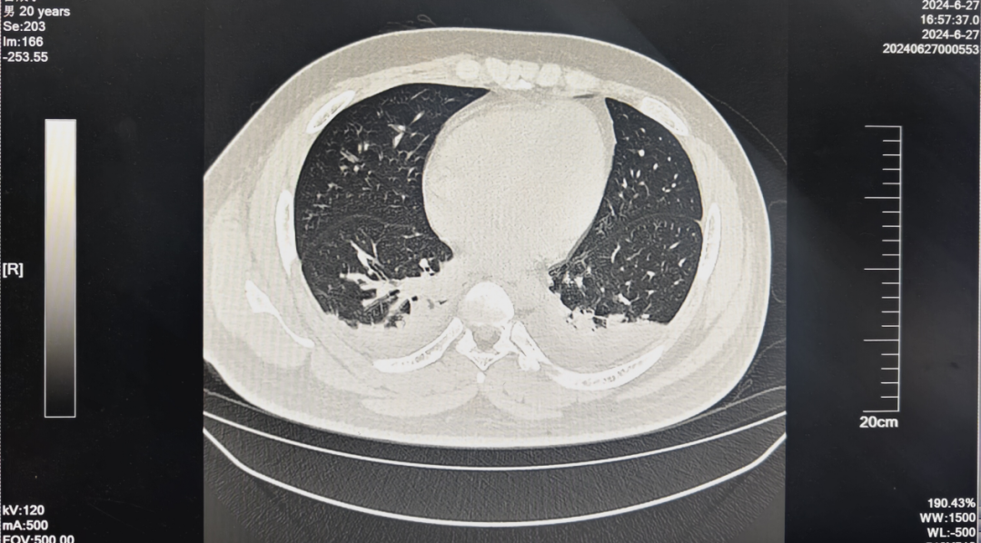然而,患者双肺损伤不容乐观,胸部CT显示在胸腔积液的基础上,部分出现纤维化。