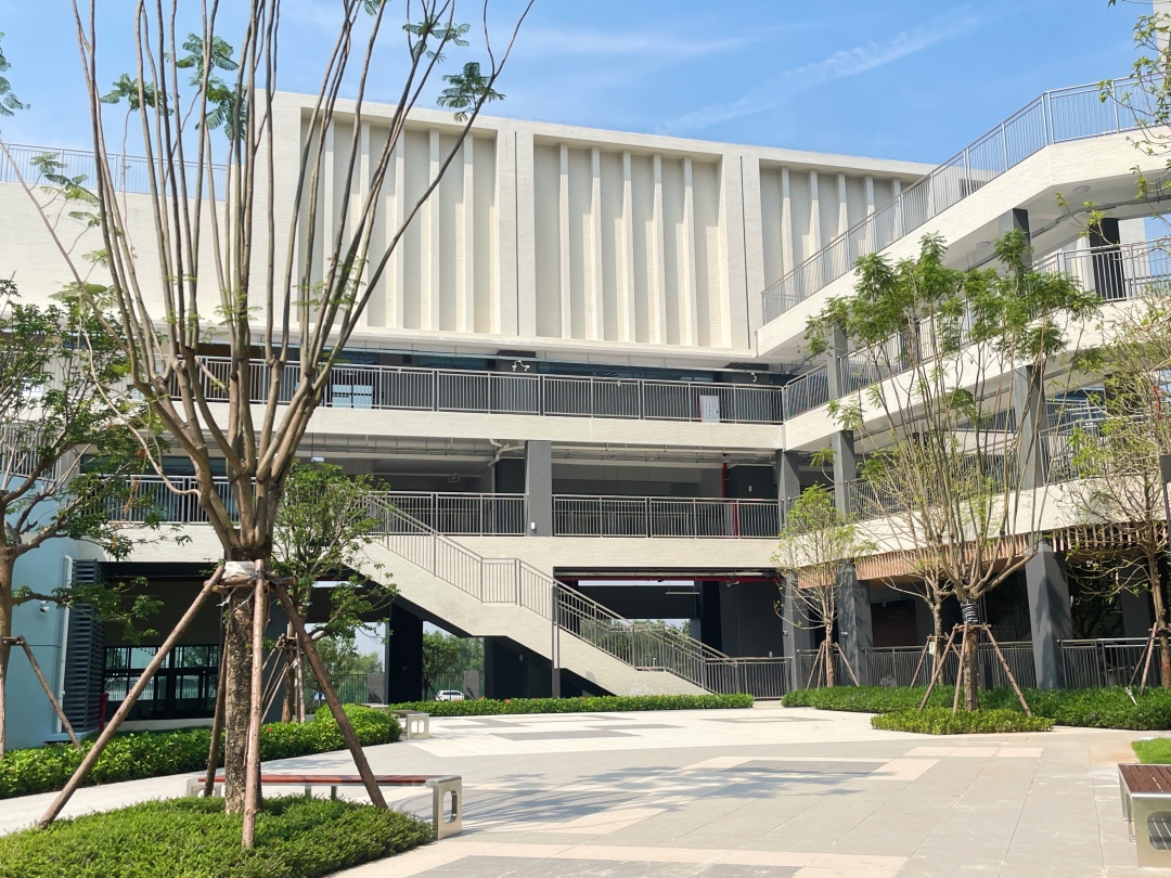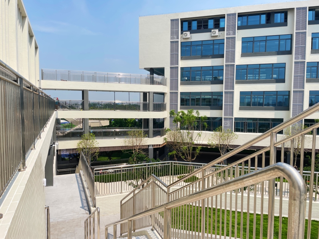 校园通过多层连廊、功能复合组团,以建筑空间的创新支持教育的创新,配备多功能体育馆、篮球场、足球场、学生活动中心、器乐排练室、音乐教室等20多间功能场室,为实现学生全面个性发展提供良好的校园环境。