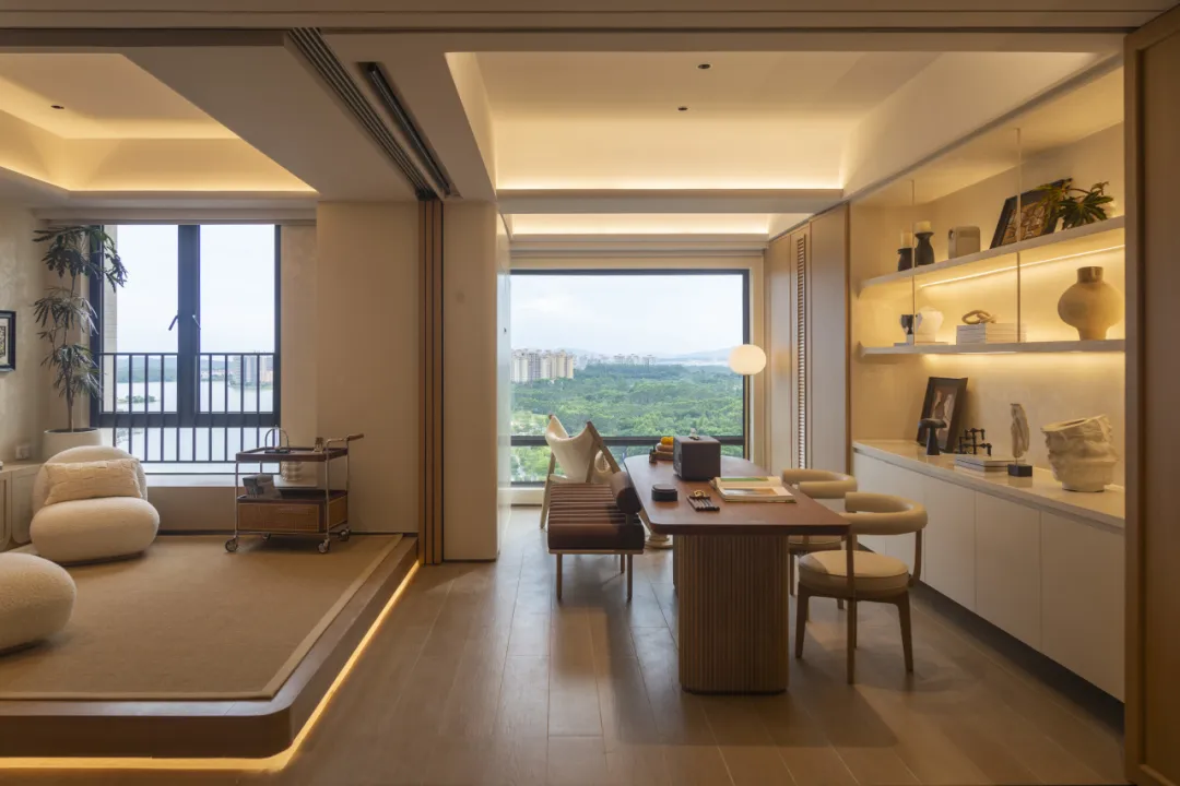 据悉,作为美林湖首个设计师住假作品,马约尔花园组团与湖为邻,将8000亩湖景自然风光引入室内,房间就具有超270度一镜到底的湖山视野。从户型设计来看,开放式的空间布局,减少了形式化的室内装饰,可以自由切换实用场景与生活情调。架空层休闲泛会所,让家门口可以成为度假场域,金钥匙服务、引入“业主购房+民宿托管”模式,提供多元资产配置。其营造的“5+2住假生活模式”,可以让业主在日常忙碌的工作之余,迎接居家两天的度假生活。