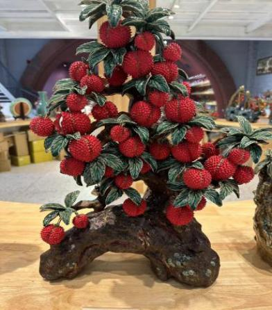 《大富大贵》陶瓷作品,惟妙惟肖地塑造出百年荔枝树长势茂密,并结满佳果的情景。“荔”和“利”同音,寓意大吉大利,火红色的外表给人喜庆之感,果实累累亦是富裕的象征。