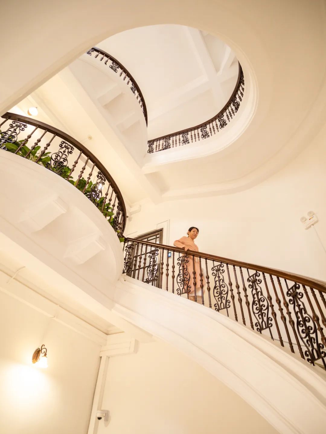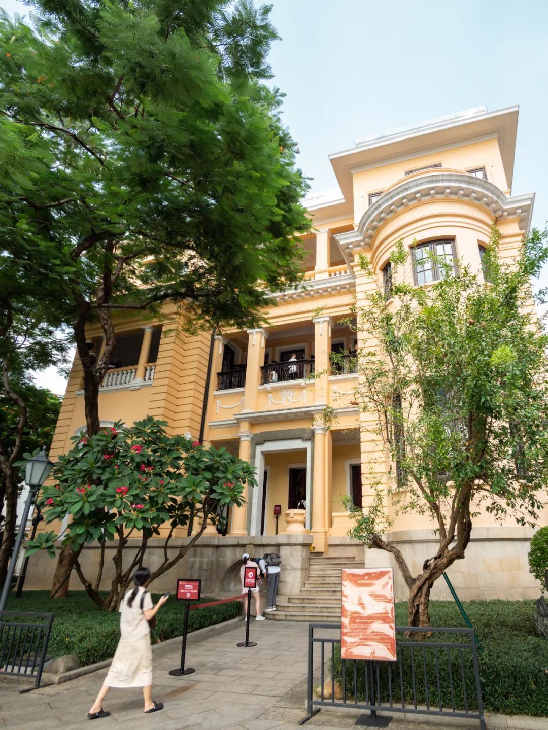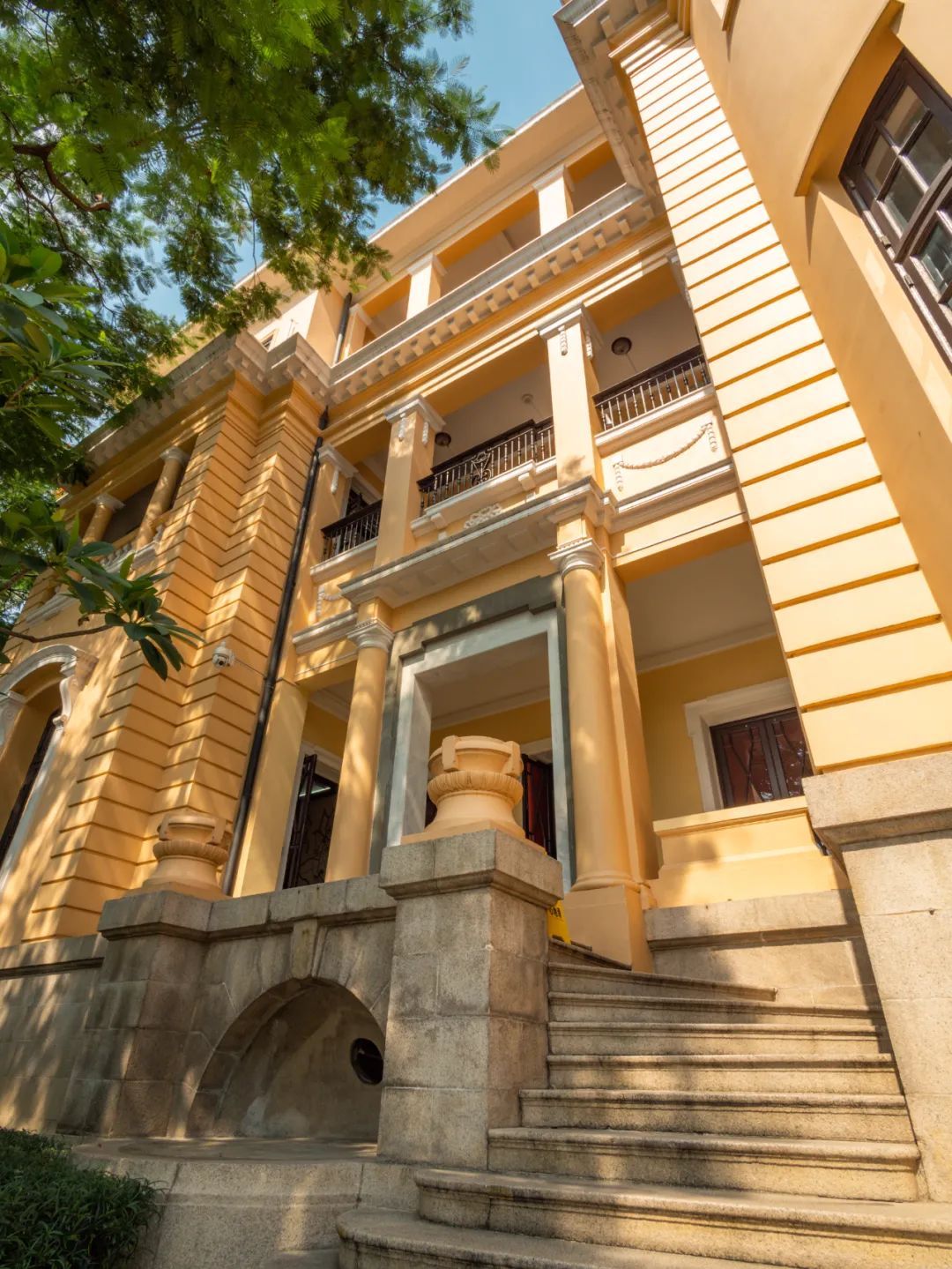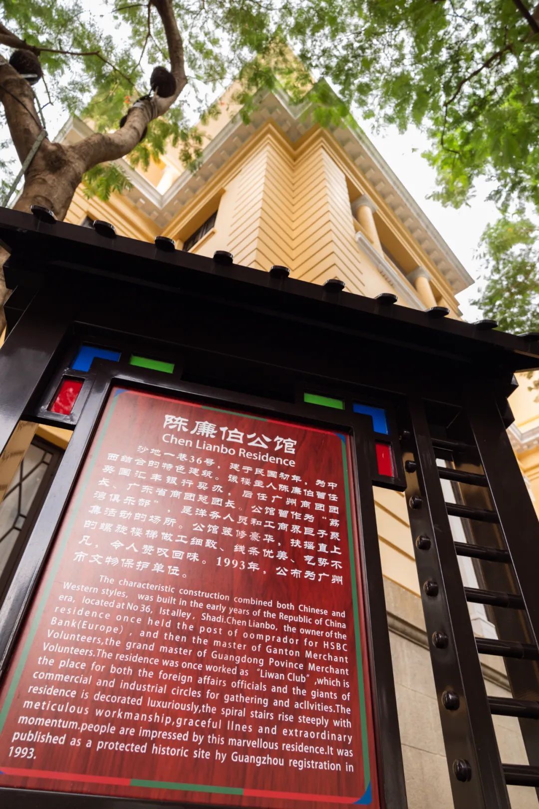 走进清末商人陈廉伯的旧居,这是广州市文物保护单位,黄色外墙、欧式柱廊、弧形阳台、有“广州最美旋转楼梯”之称的螺旋式楼梯……这座仿欧式风格砖木结构三层楼房有一百多年的历史,造型精美、气派非凡,是广州近代最早兴建的西式花园住宅之一。这座建筑的装饰元素丰富,古典复兴的柱式与柱廊,巴洛克式的弧形窗套、阳台,新艺术风格的铁艺栏杆和窗棱,室内大型旋转楼梯等共同营造了富丽华贵的外观。