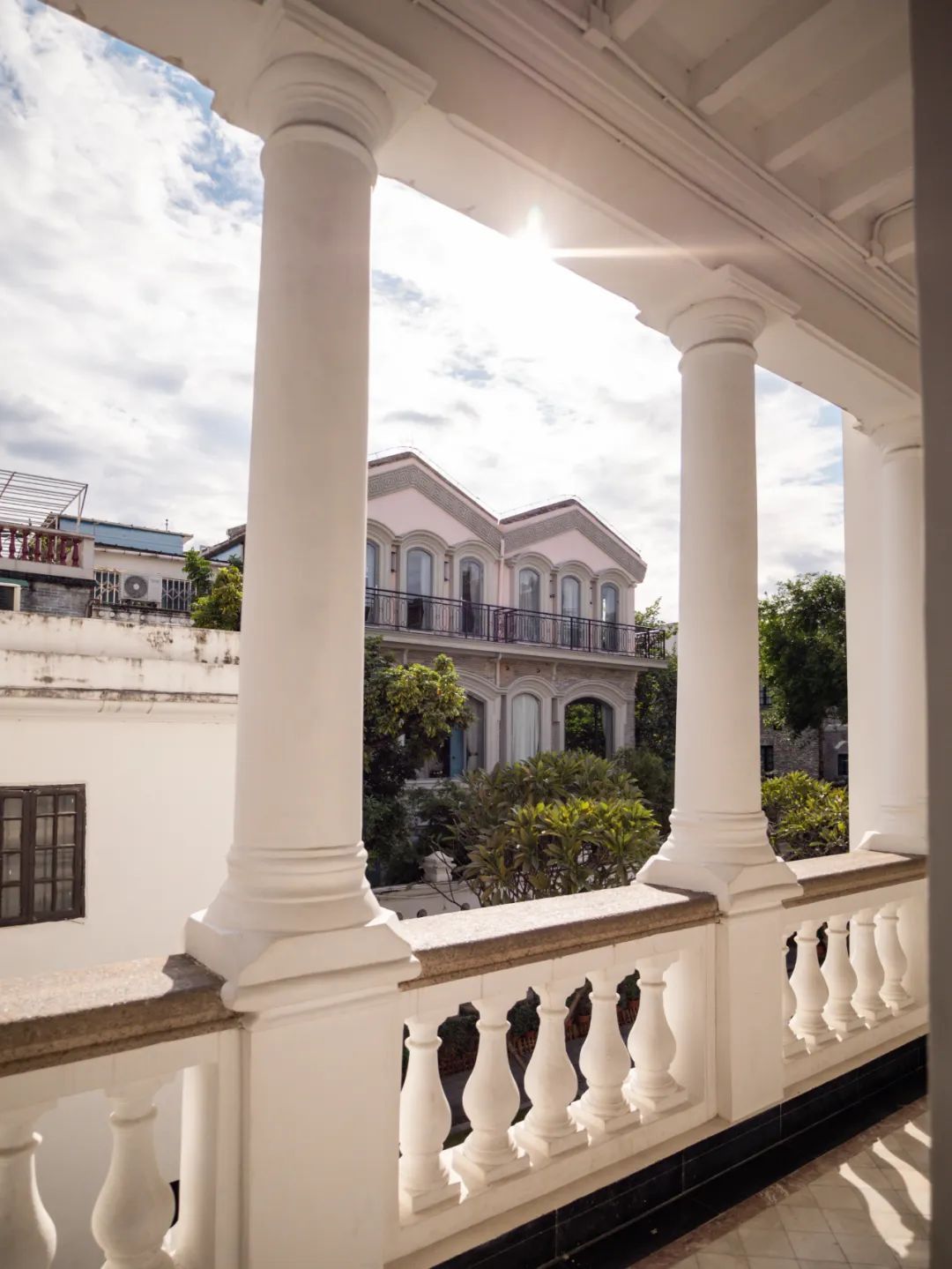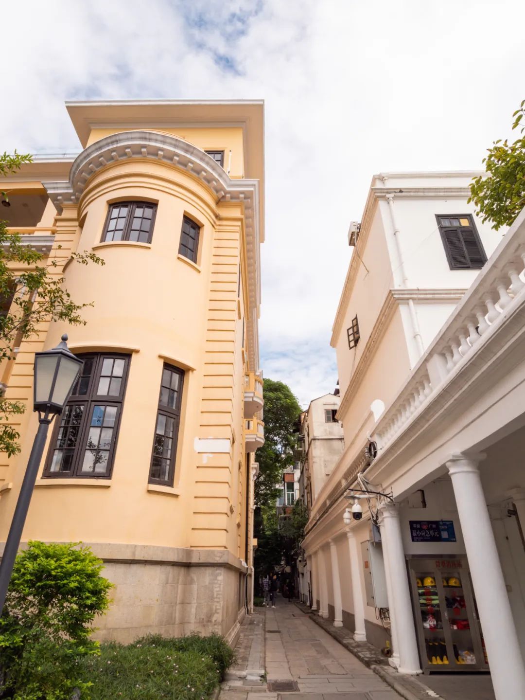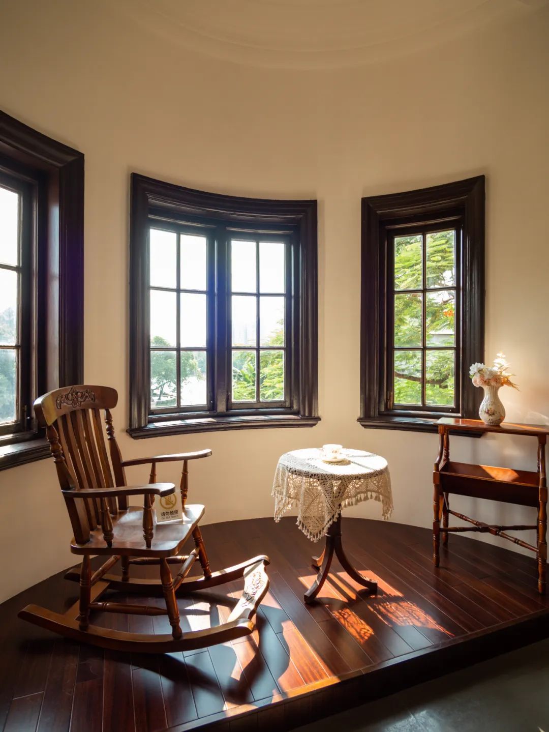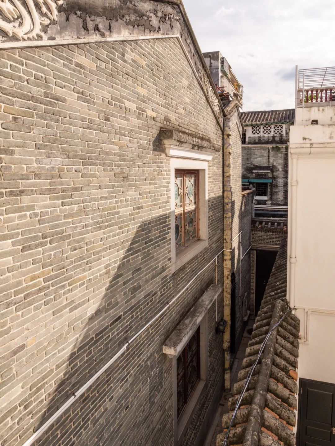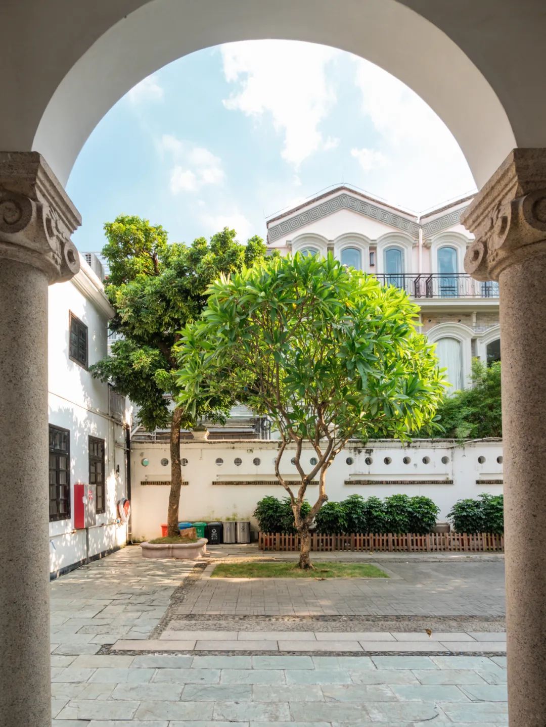 这里有欧式楼房典雅的立柱、拱券门洞和旋转楼梯,也有西关大屋古色古香的木趟栊、青砖和满洲窗(蚀刻彩色玻璃窗)。