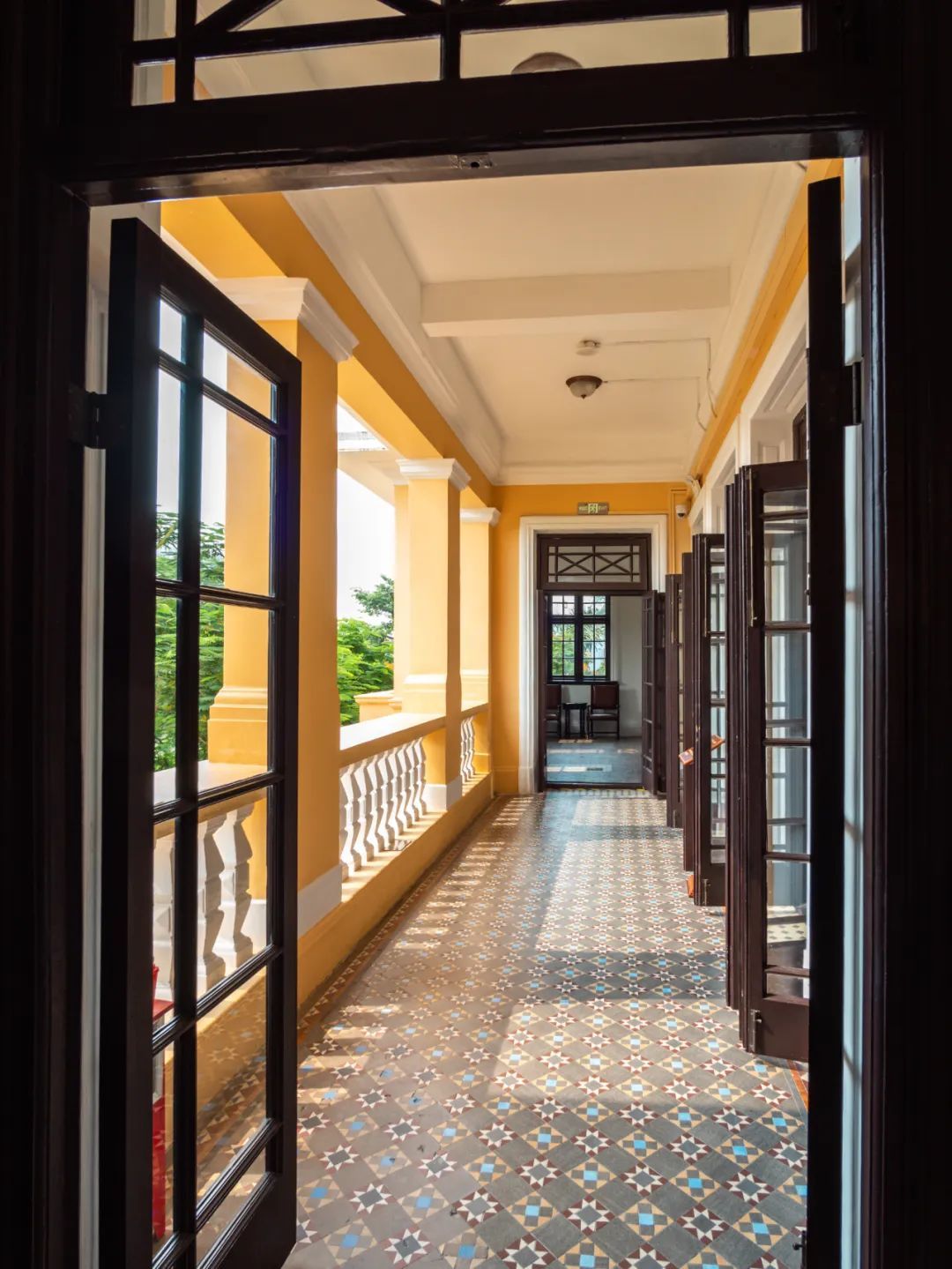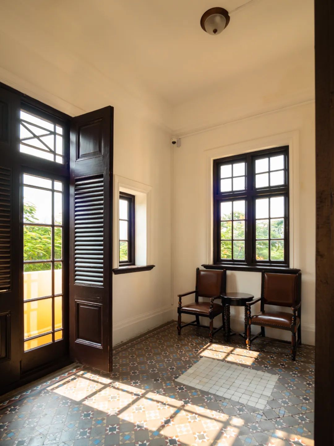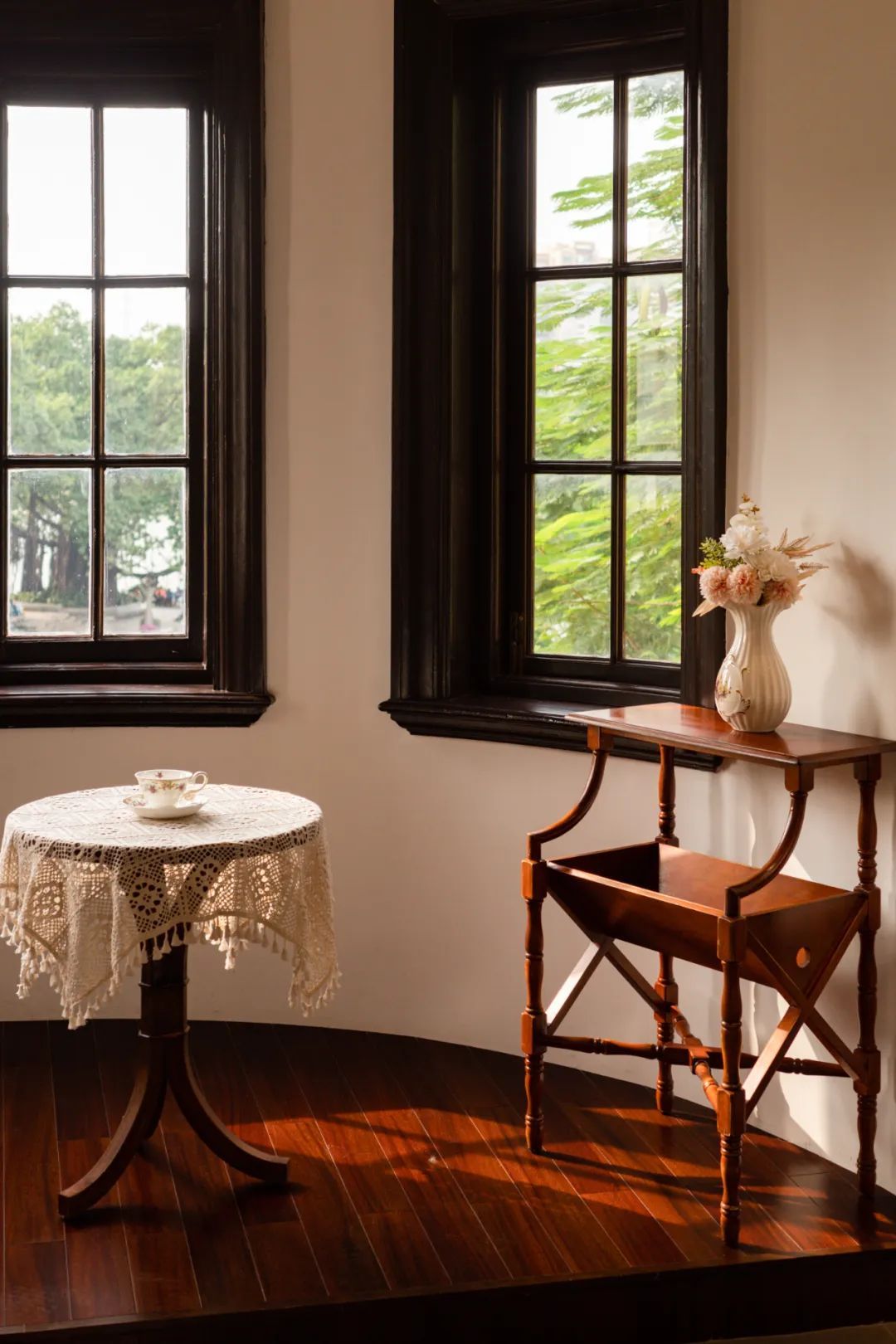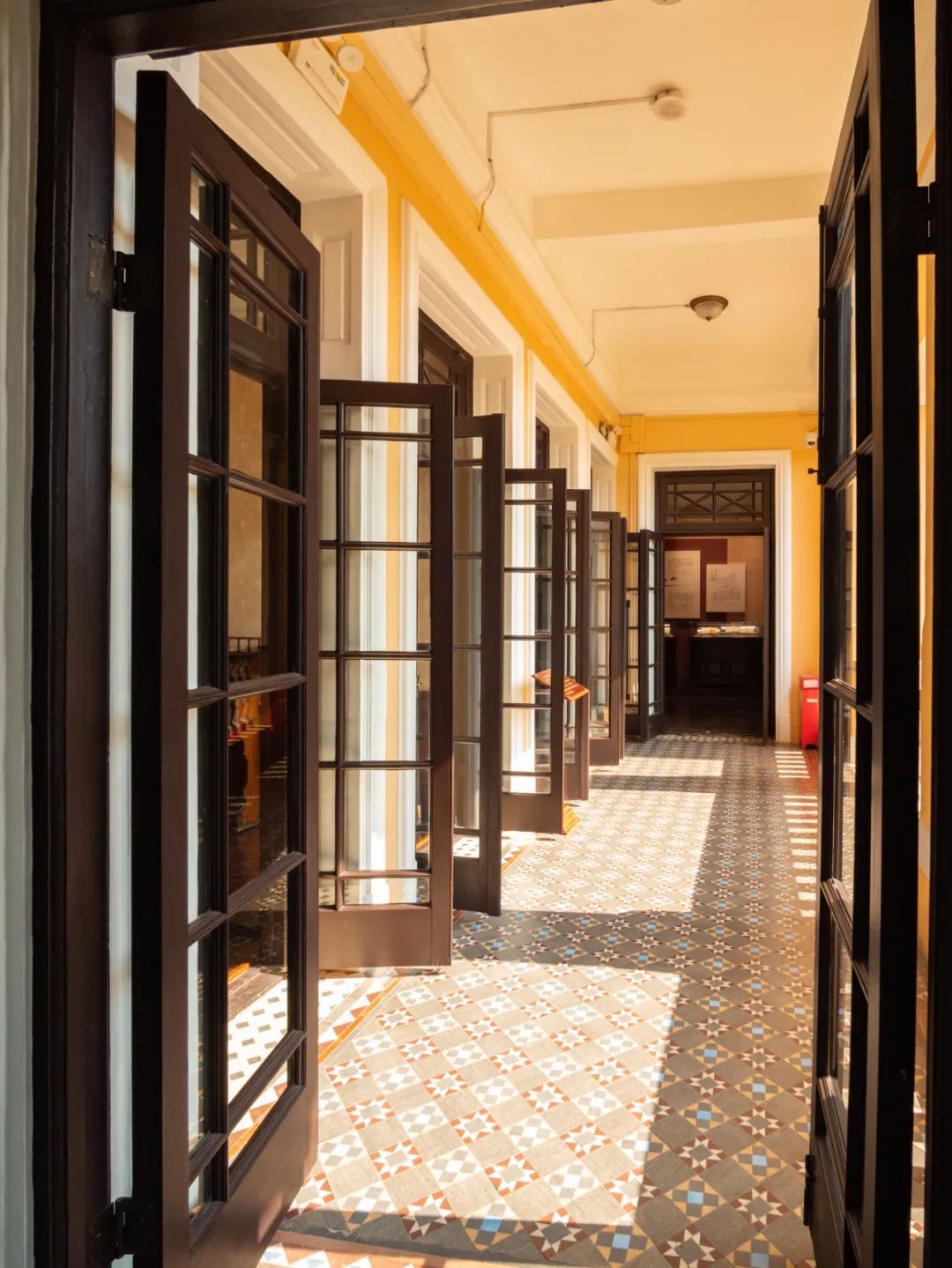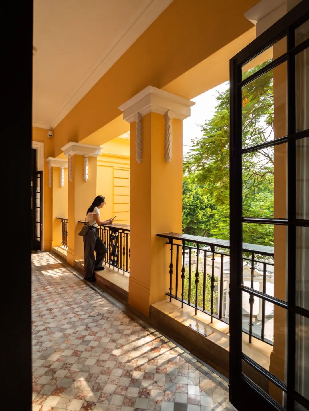 这里有欧式楼房典雅的立柱、拱券门洞和旋转楼梯,也有西关大屋古色古香的木趟栊、青砖和满洲窗(蚀刻彩色玻璃窗)。