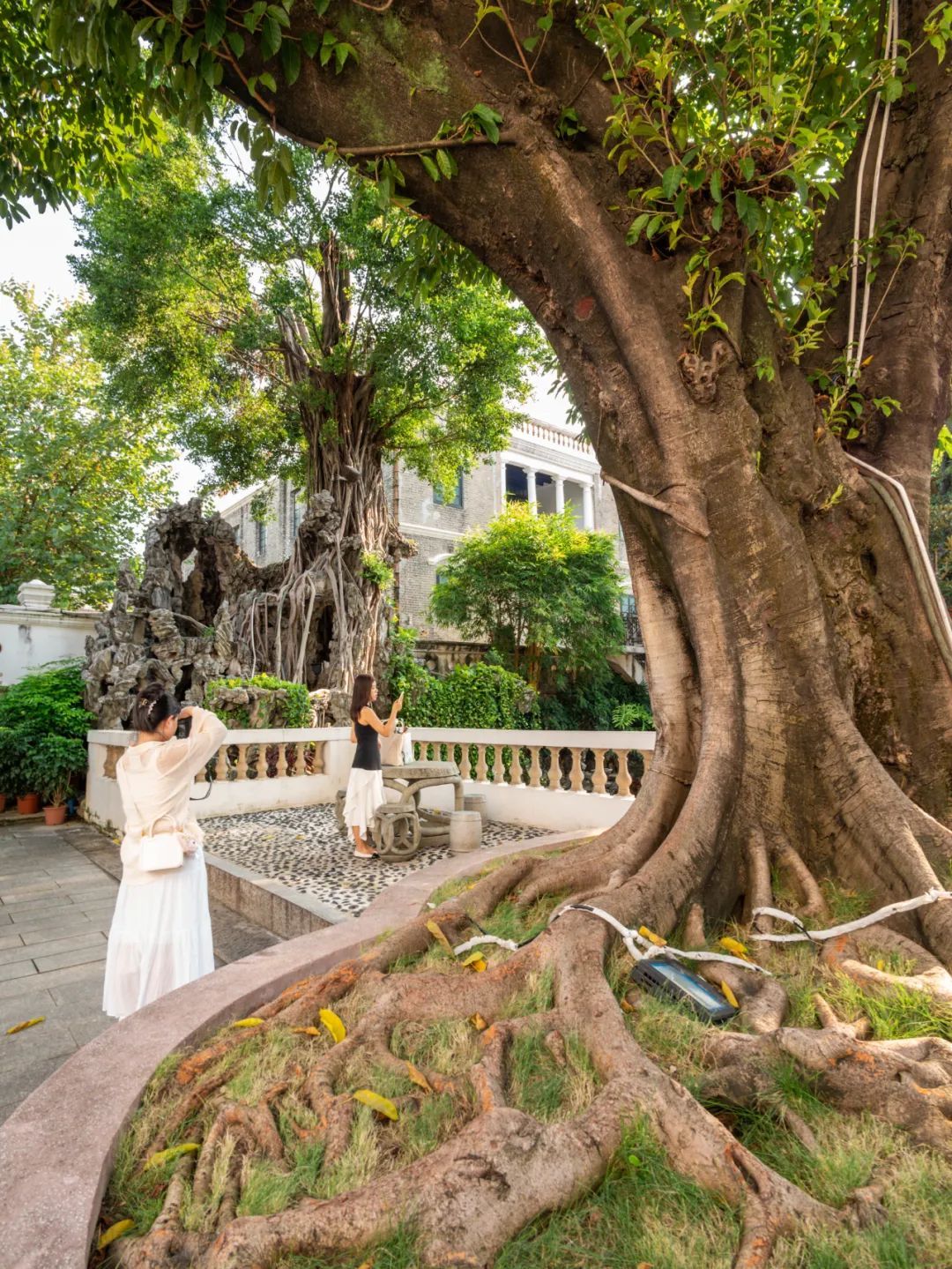 找一个阳光明媚的午后,沿着荔枝湾畔信步走去,里面有很多富有西关风情的老建筑。现场花五块钱购买一张票,就能一口气逛完荔湾博物馆的四个组成部分,包括蒋光鼐旧居、陈廉仲旧居、陈廉伯旧居和依托西关大屋而设的西关民俗馆。这里的建筑风格中西交融,既有仿罗马、希腊的柱式及拱门的“小洋楼”,又有由石山、岩洞、亭台、路桥组成的中式庭院,石上有树,石下有池。