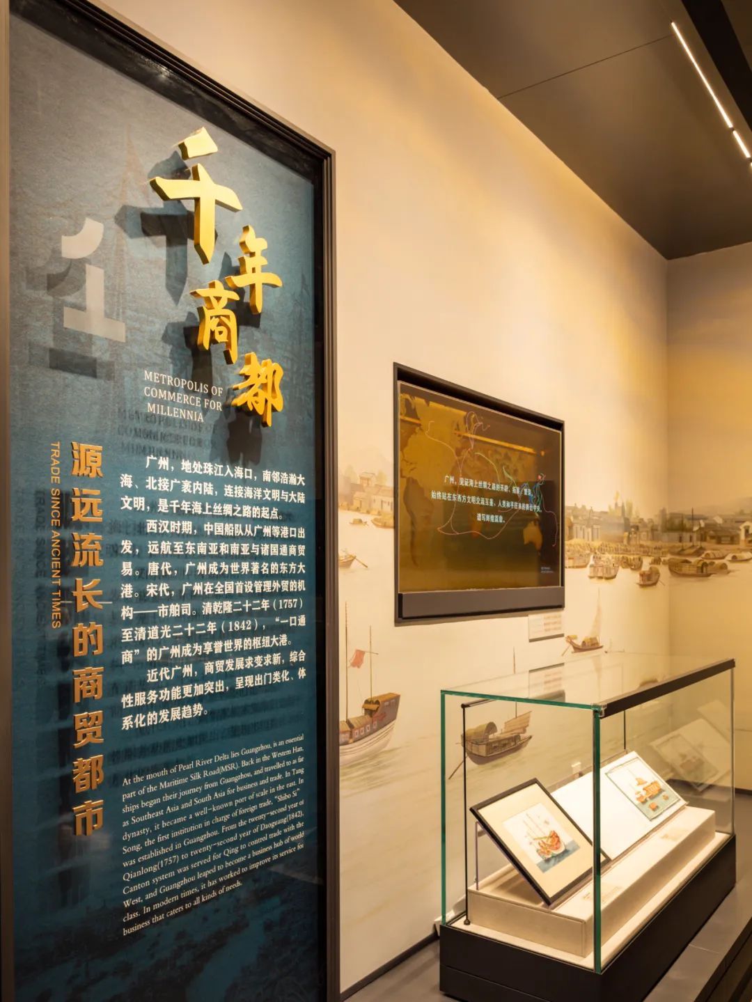 布展独具匠心,展览分“千年商都——源远流长的商贸都市”“精勤懋绩——广州商人的突出成就”“家国情怀——广州商人的善行义举”“雅意风尚——广州商人的生活情趣”四个部分,讲述广州商人崛起发展的历史背景,内外开拓、屡开先河的商业成就,挽利权重公益的家国情怀,以及兴学重教的文化贡献,带领观众领略商都繁华历史,感受商人精神特质。