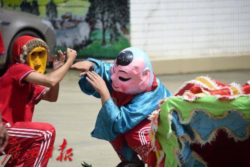 但与以往不同的是,在这次活动中出现了许多年轻人的身影。 扮演黄脸猴的小郭今年18岁,已经是表演队同辈人里的“大哥”了。小郭说,他从五年级开始学习貔貅舞的基本功。貔貅舞表演十分讲究礼节,采青、接礼等每一个环节都有一套相应的动作,手上功夫、脚下步伐都要熟练。“生龙活虎是表演的一大亮点,没有一定的武术基础就不够生猛、活泼。”