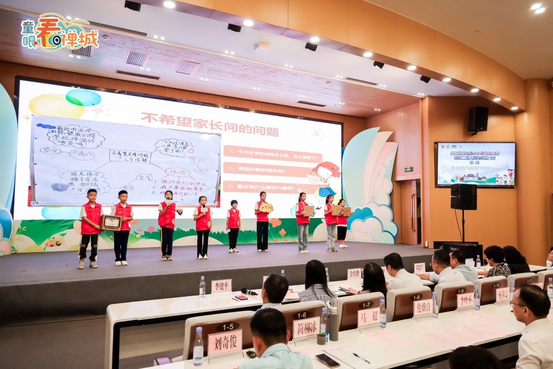 在决赛中,孩子们生动地呈现了亲子沟通中的种种场景,并提出了许多富有建设性的意见和建议。最终,湖涌村计仔多多智囊团、崇文南小队、龙津“爱心学堂”儿童观察团获评最有共鸣团队,亲子心声桥、祖庙街道同济小学儿童观察团、探索童心获评最具启发力团队,慧眼儿童观察团、惠景社区红领巾儿童观察团