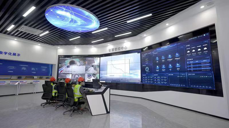 在莲花山隧道智慧管控中心内,操作人员点击数智屏幕进行介绍:“瞧,在这儿就能实现对整条隧道的无时差无盲区监控,也可实时定位施工人员的具体位置。”