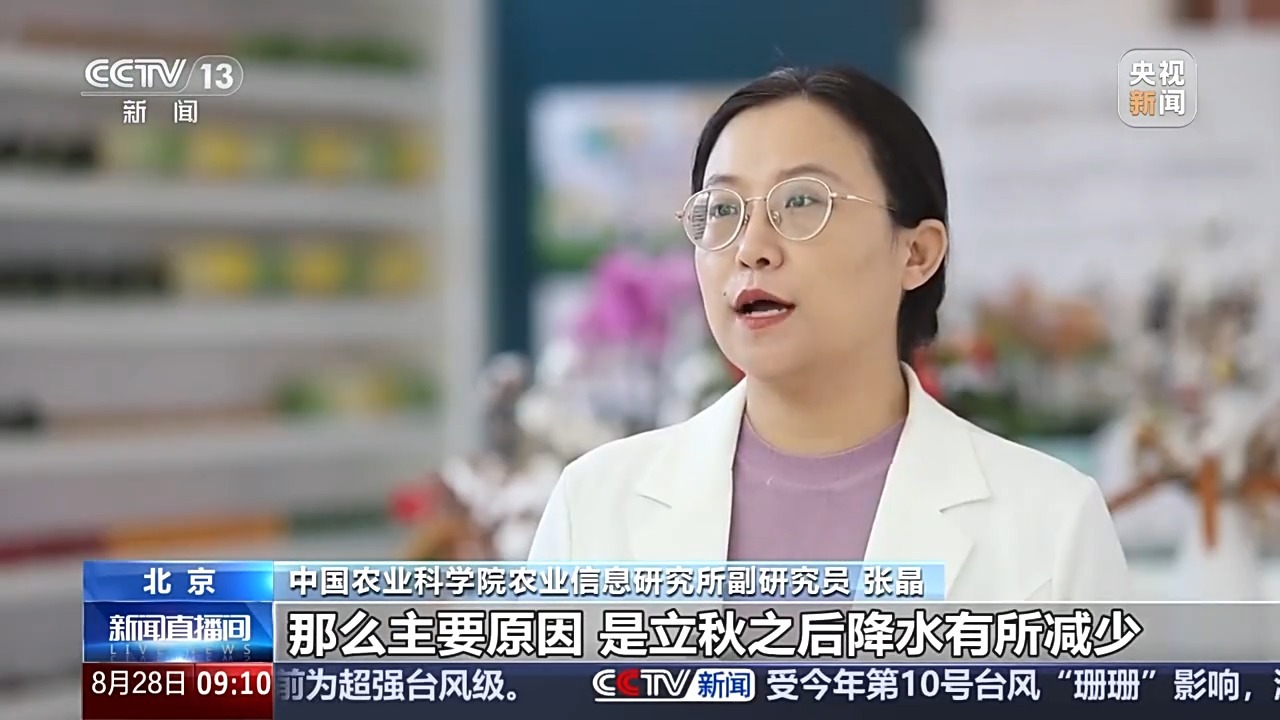 中国农业科学院农业信息研究所副研究员 张晶:主要原因是立秋之后降水有所减少,气温也比较适宜,有利于蔬菜的生长,分品种来看,像黄瓜、小油菜和生菜的价格,已经出现了明显的松动,黄瓜的价格已经基本回落到了月初的水平。