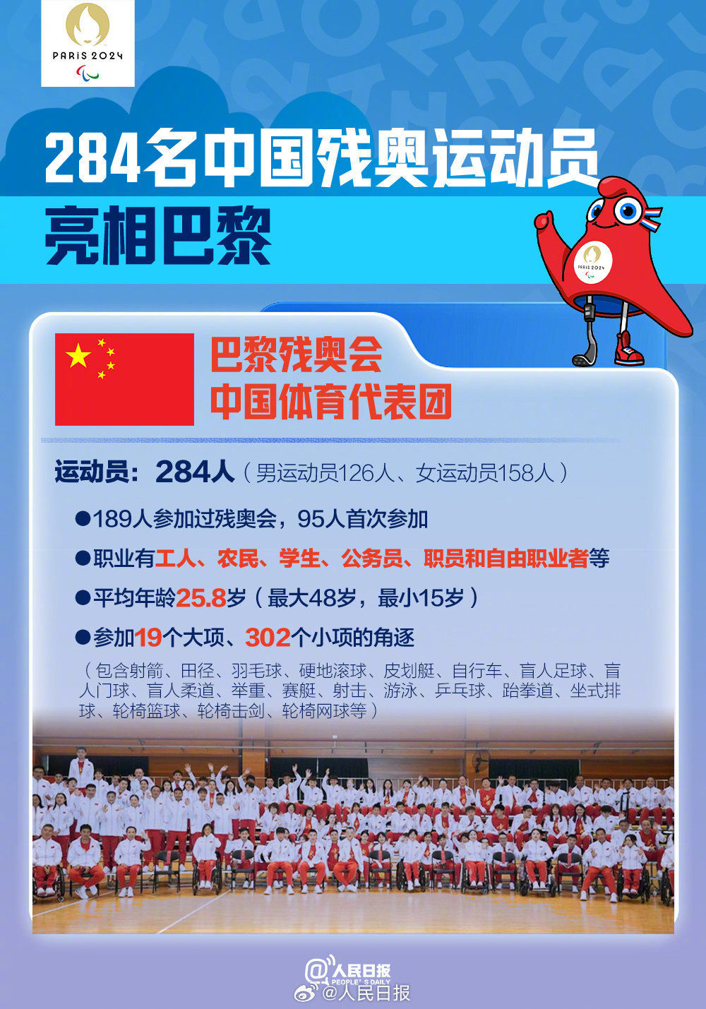 今天,巴黎残奥会角逐开启,284名中国运动员,将参与549个奖牌项目的竞技。